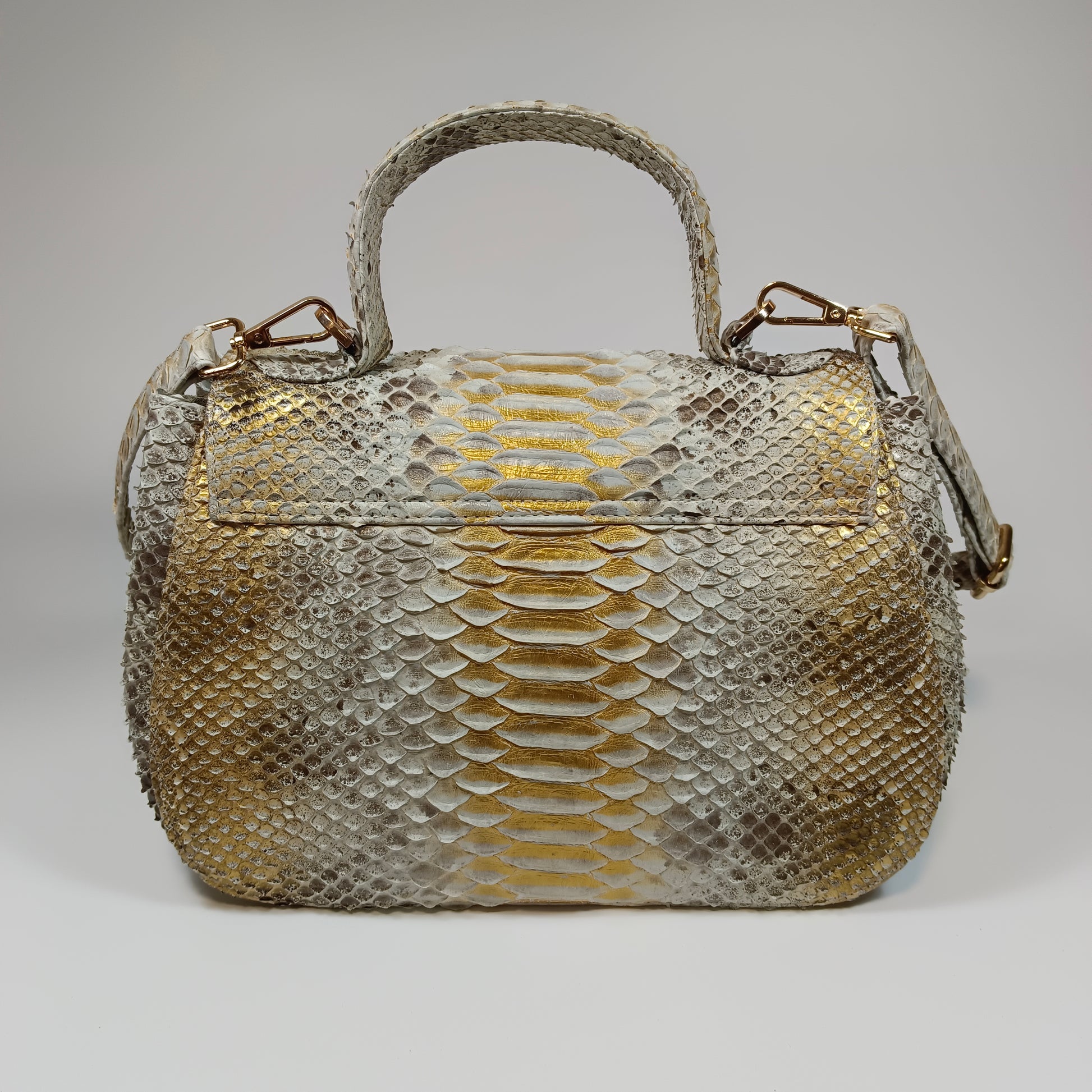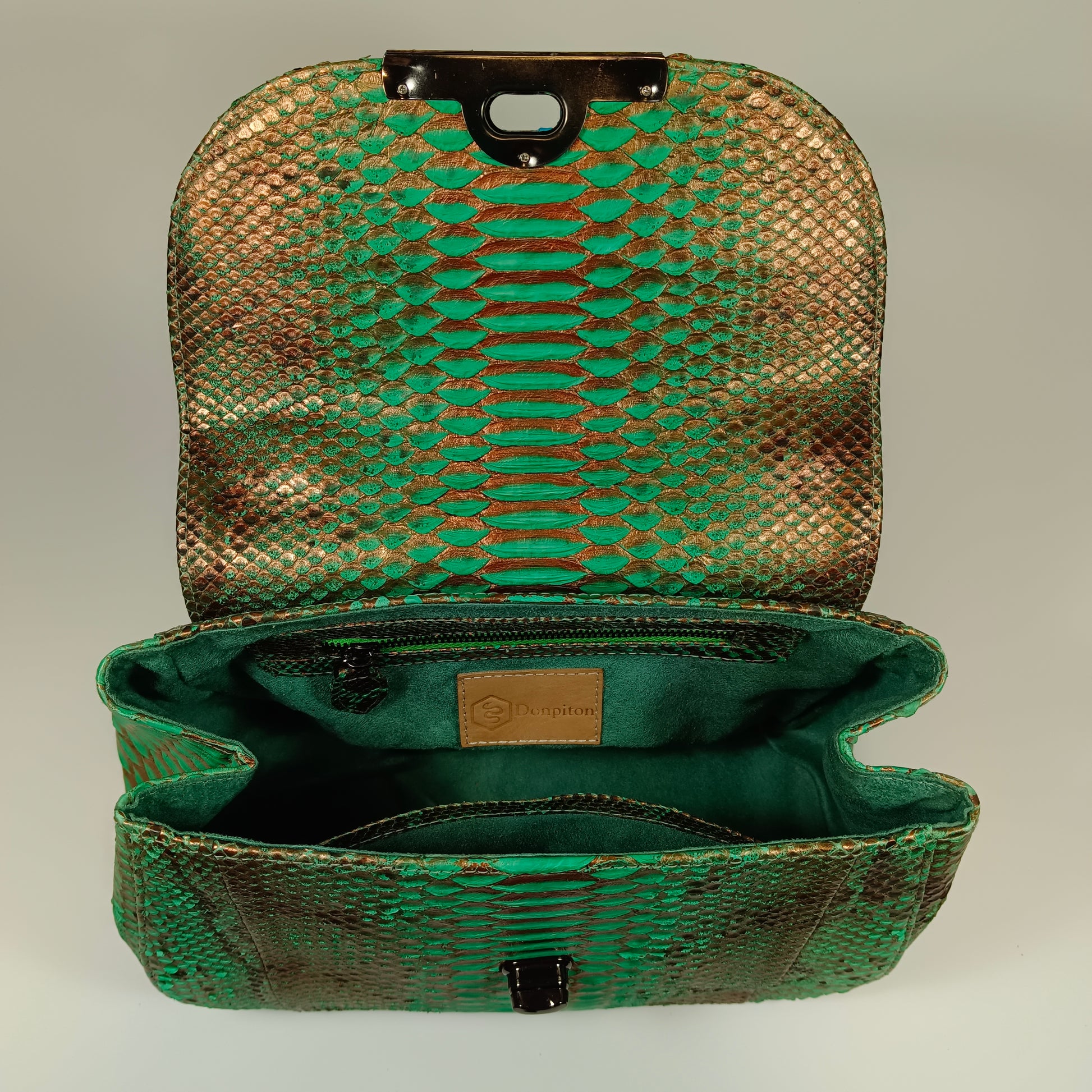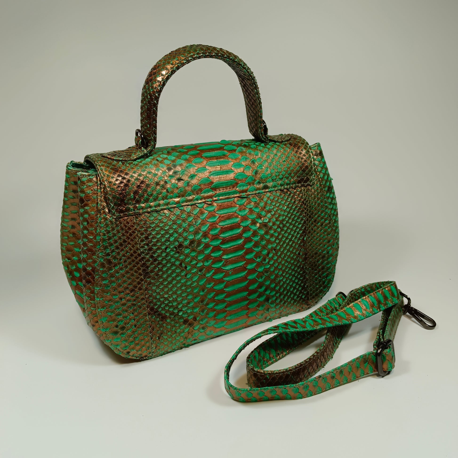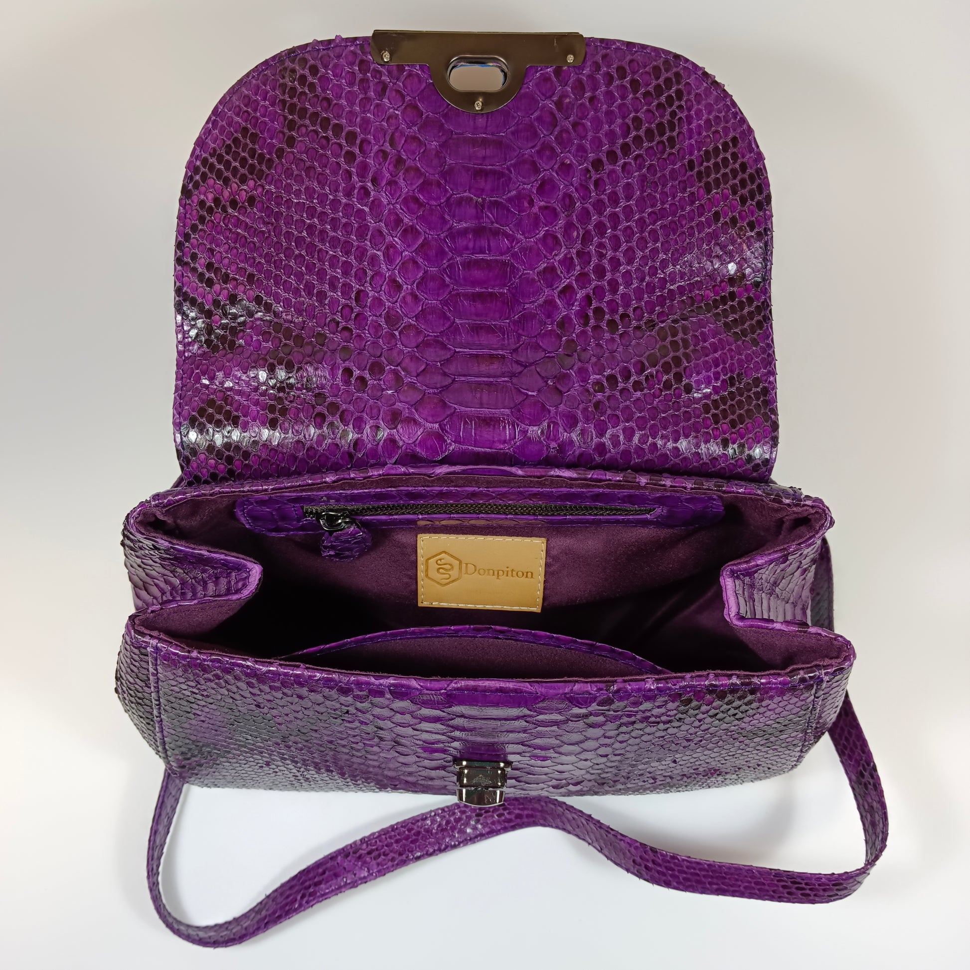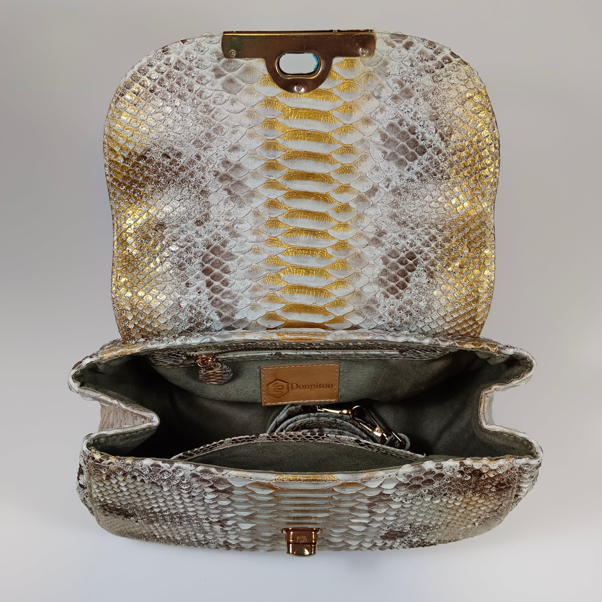 A bolsa Clan, confeccionada à mão com pele de cobra Python genuína do Sudeste Asiático, traz exclusividade com padrões e tonalidades únicos em cada peça. Com design elegante e artesanal, a Clan combina luxo e autenticidade, sendo a escolha perfeita para quem deseja sofisticação e estilo em um acessório singular. Dimensões: 27 cm de comprimento, 13 cm de largura e 18 cm de altura | alça de couro 115 cm.