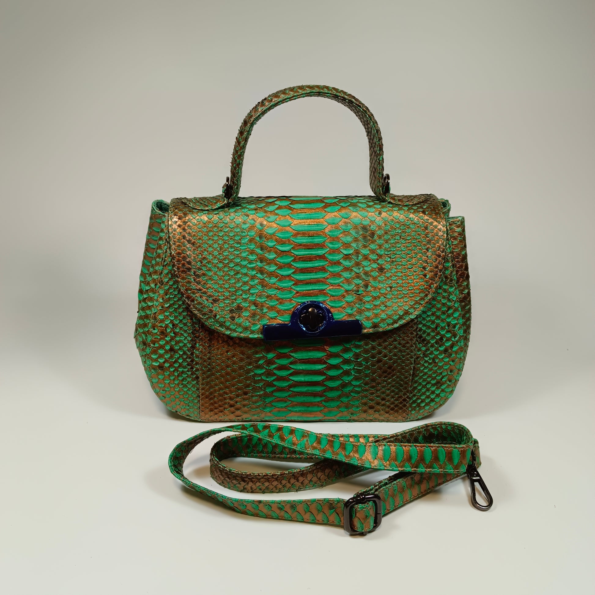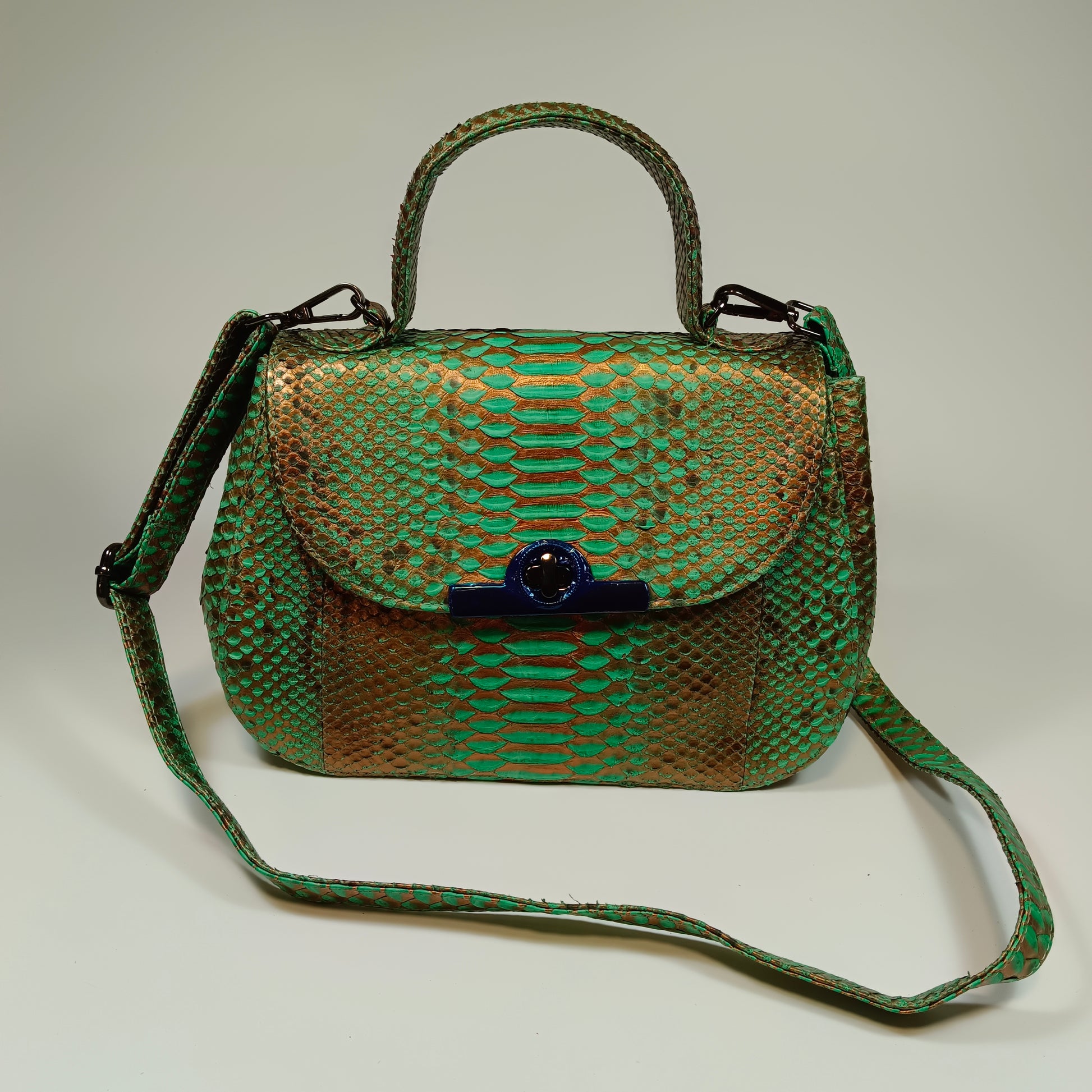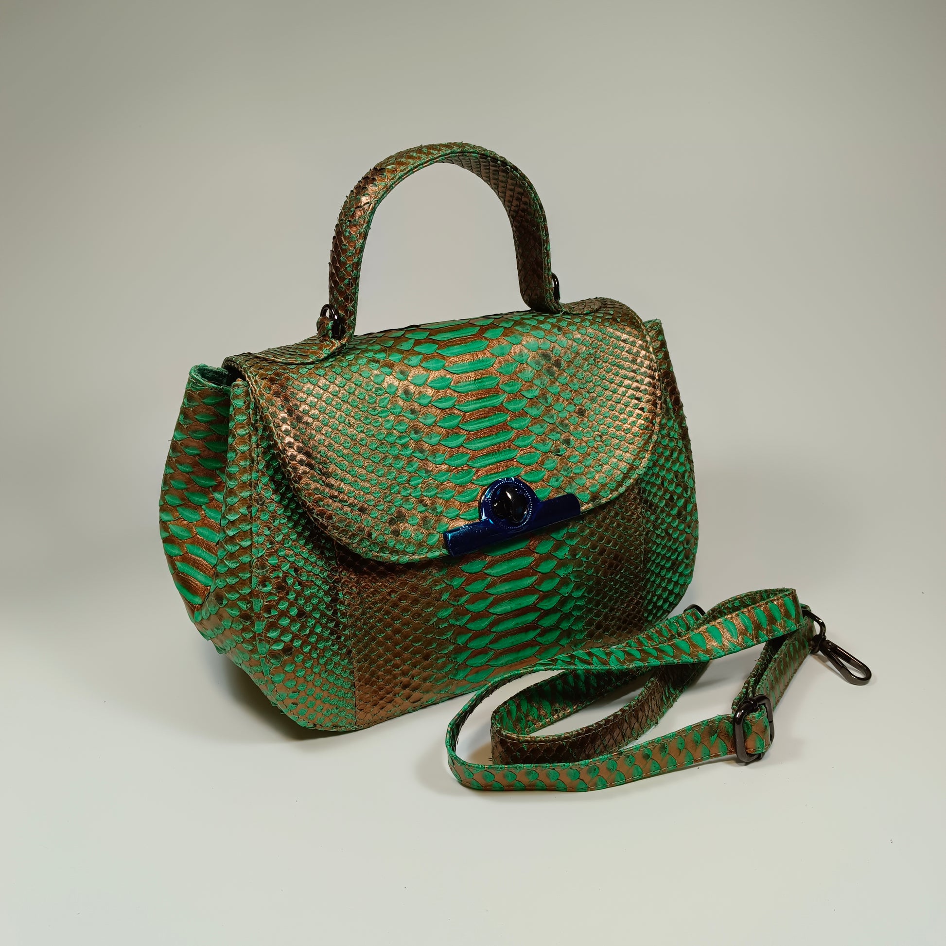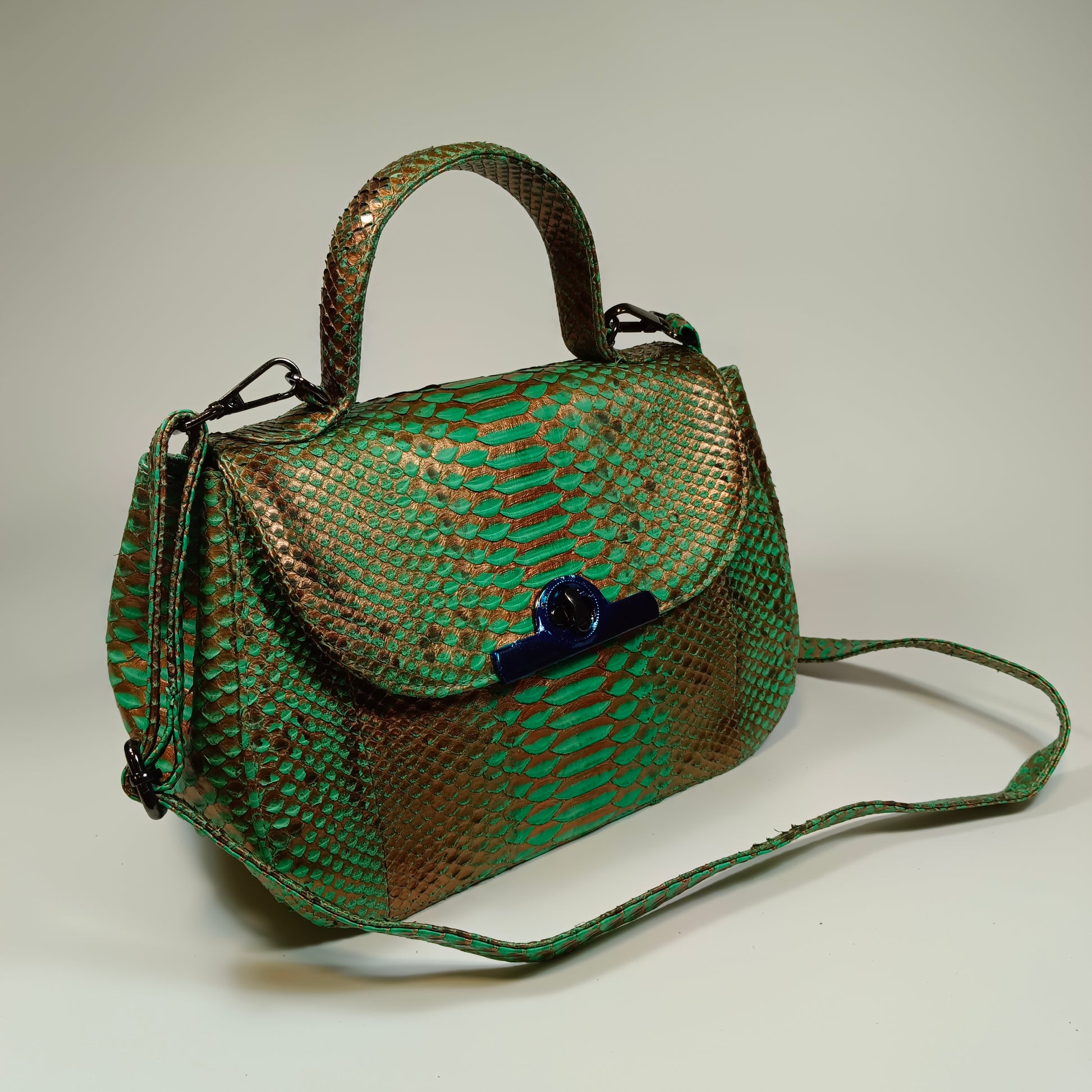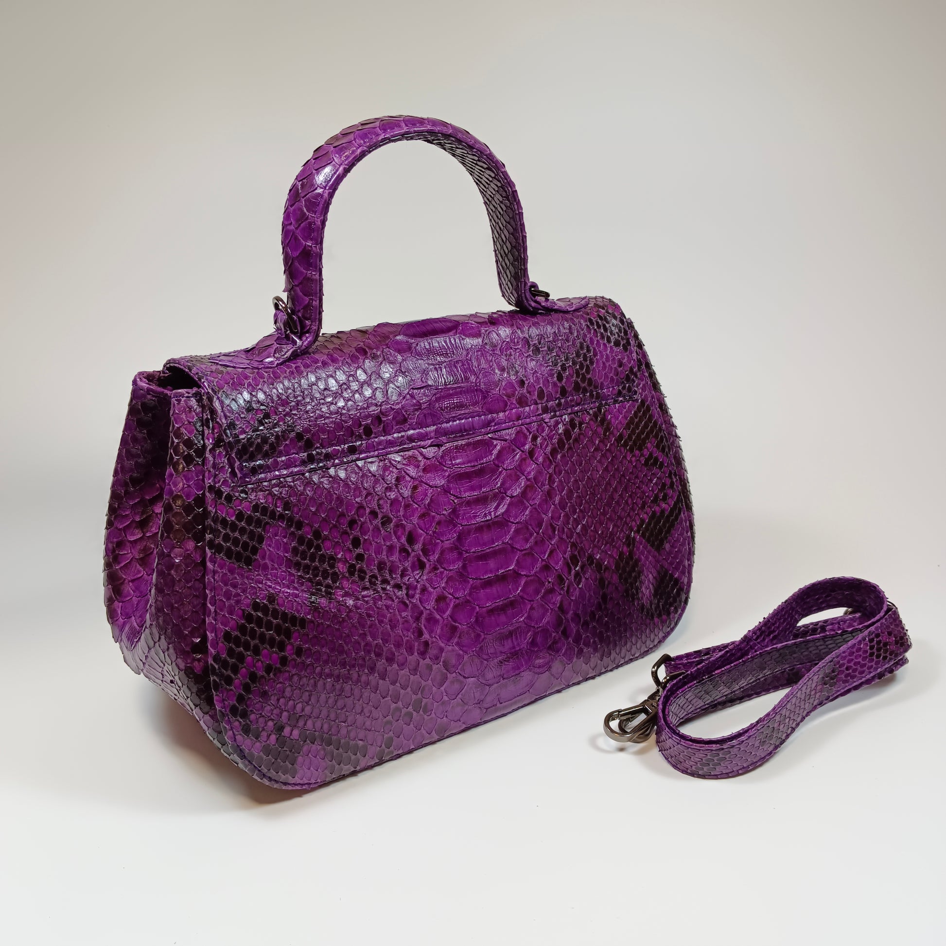 A bolsa Clan, confeccionada à mão com pele de cobra Python genuína do Sudeste Asiático, traz exclusividade com padrões e tonalidades únicos em cada peça. Com design elegante e artesanal, a Clan combina luxo e autenticidade, sendo a escolha perfeita para quem deseja sofisticação e estilo em um acessório singular. Dimensões: 27 cm de comprimento, 13 cm de largura e 18 cm de altura | alça de couro 115 cm.