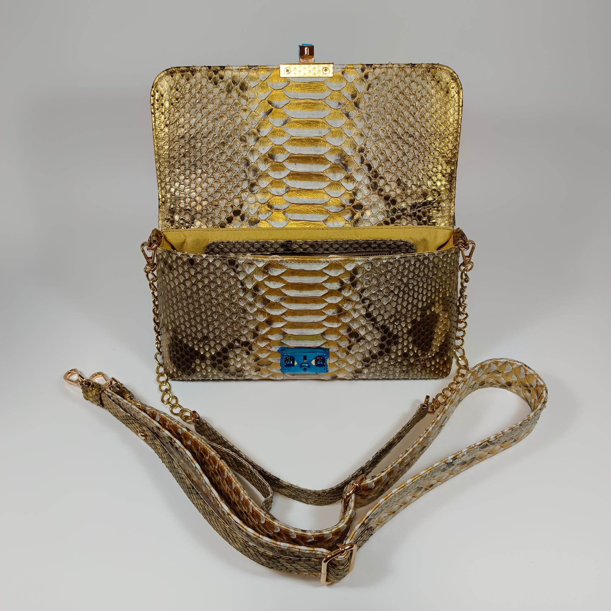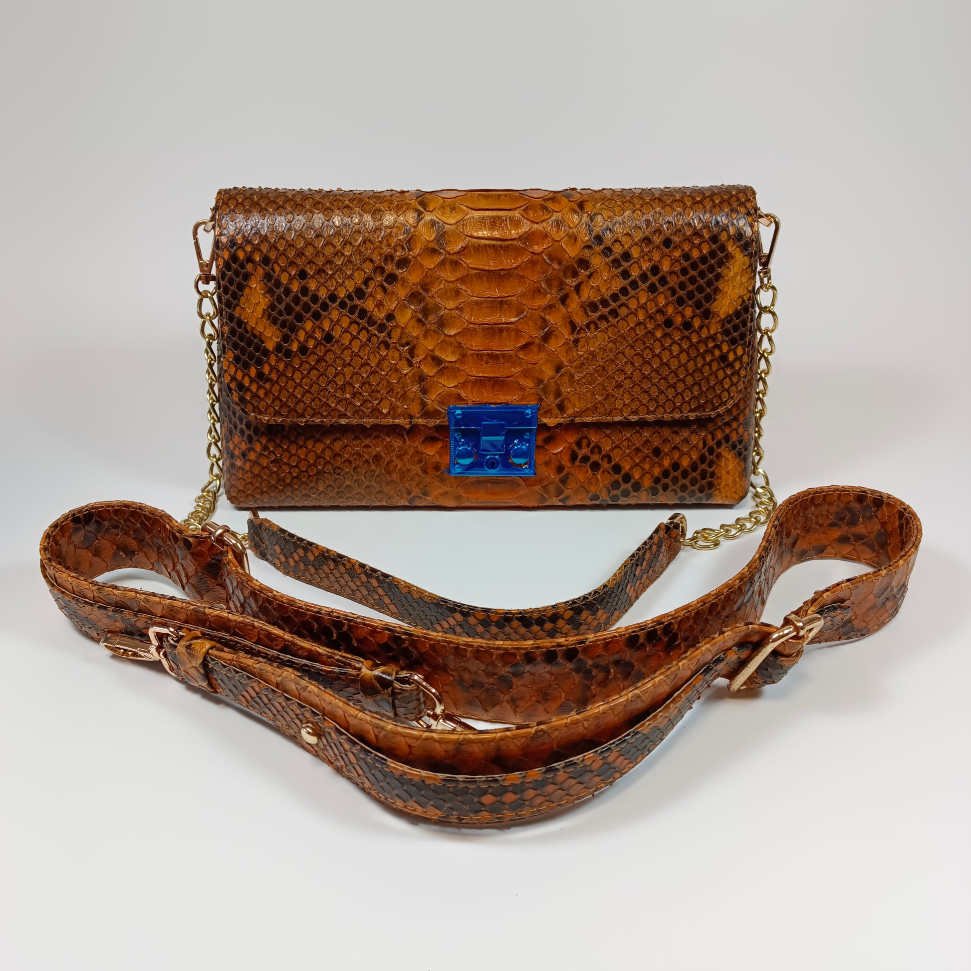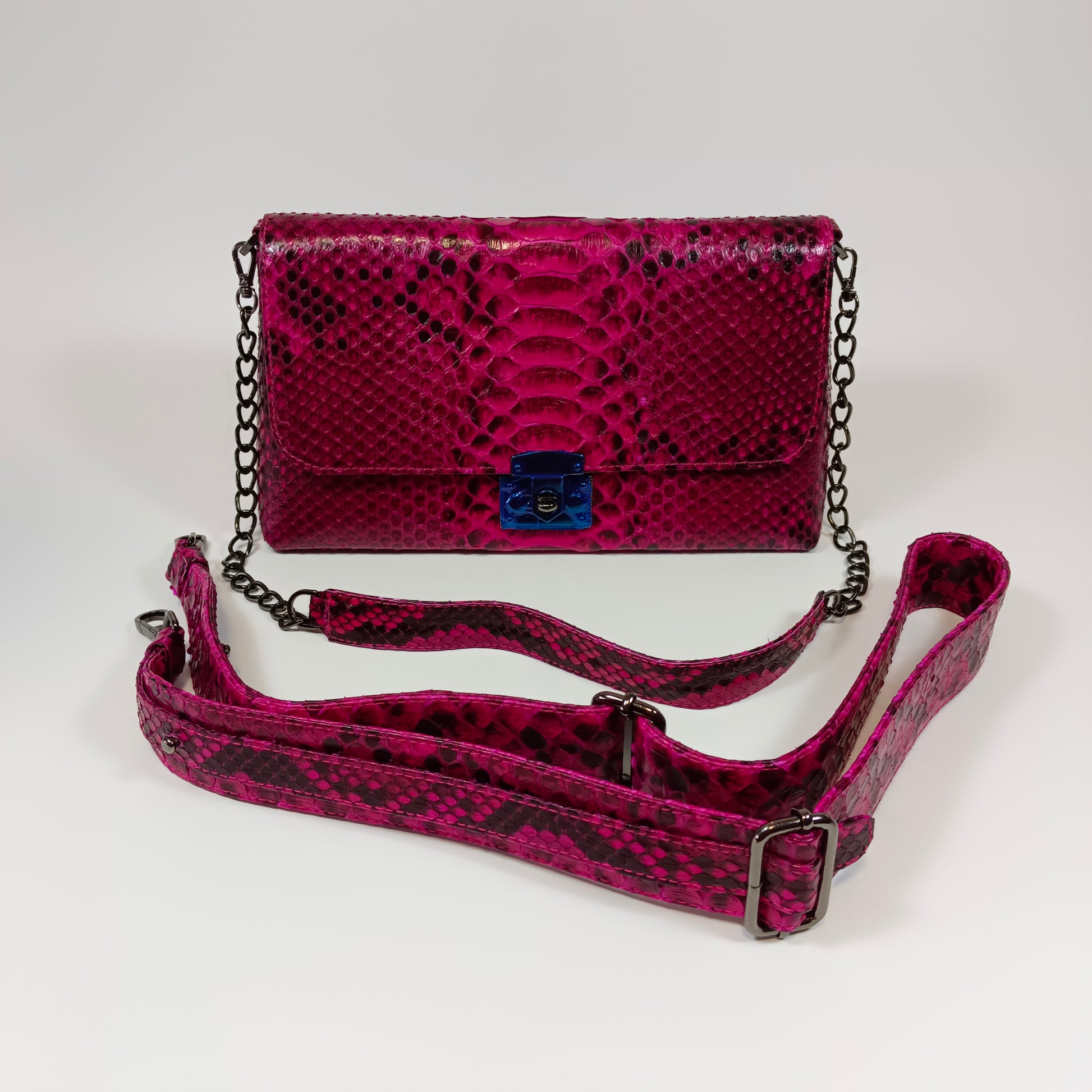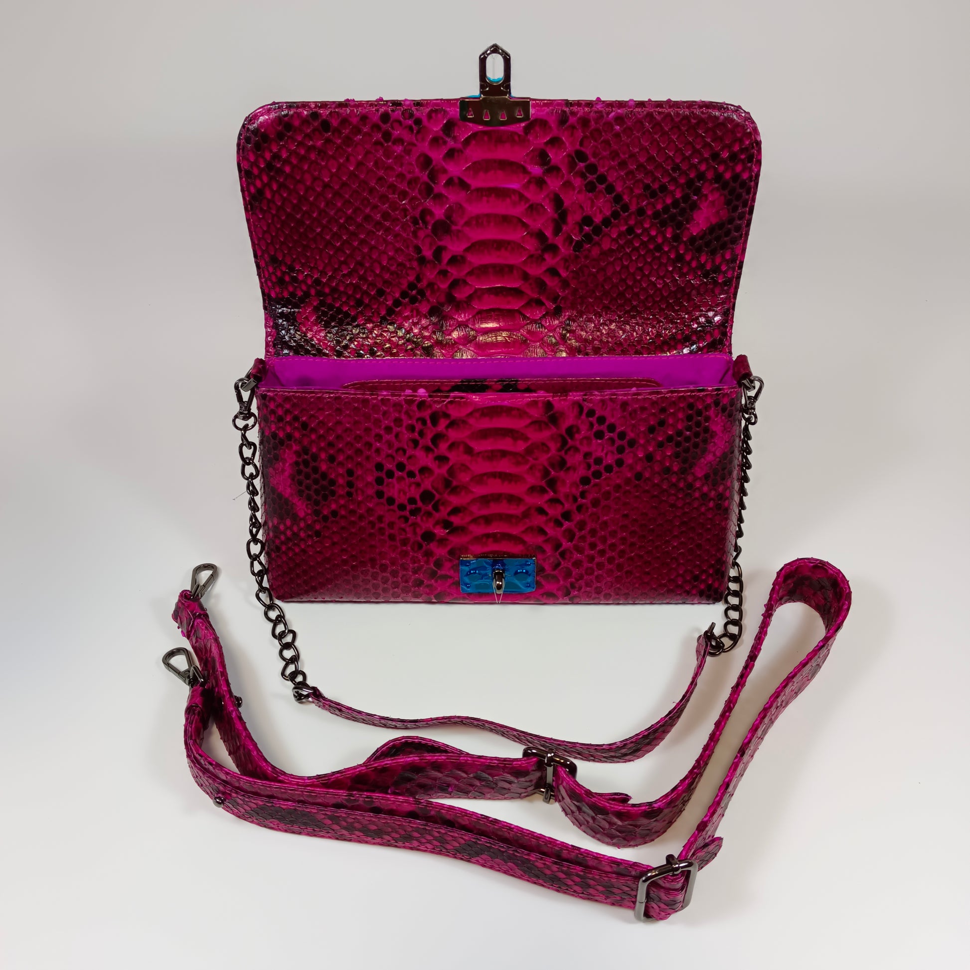 A Bolsa Gun, confeccionada em pele de cobra Python genuína, oferece luxo e exclusividade em cada detalhe. Seu design atemporal combina sofisticação com resistência, ideal para quem busca estilo e durabilidade. Feita à mão, cada peça é única, refletindo elegância e autenticidade. Uma escolha premium que destaca sua personalidade e bom gosto. Dimensões: 28 cm de comprimento, 8 cm de largura e 16 cm de altura | alça em couro e corrente de metal 70 cm e alça de couro 115cm.