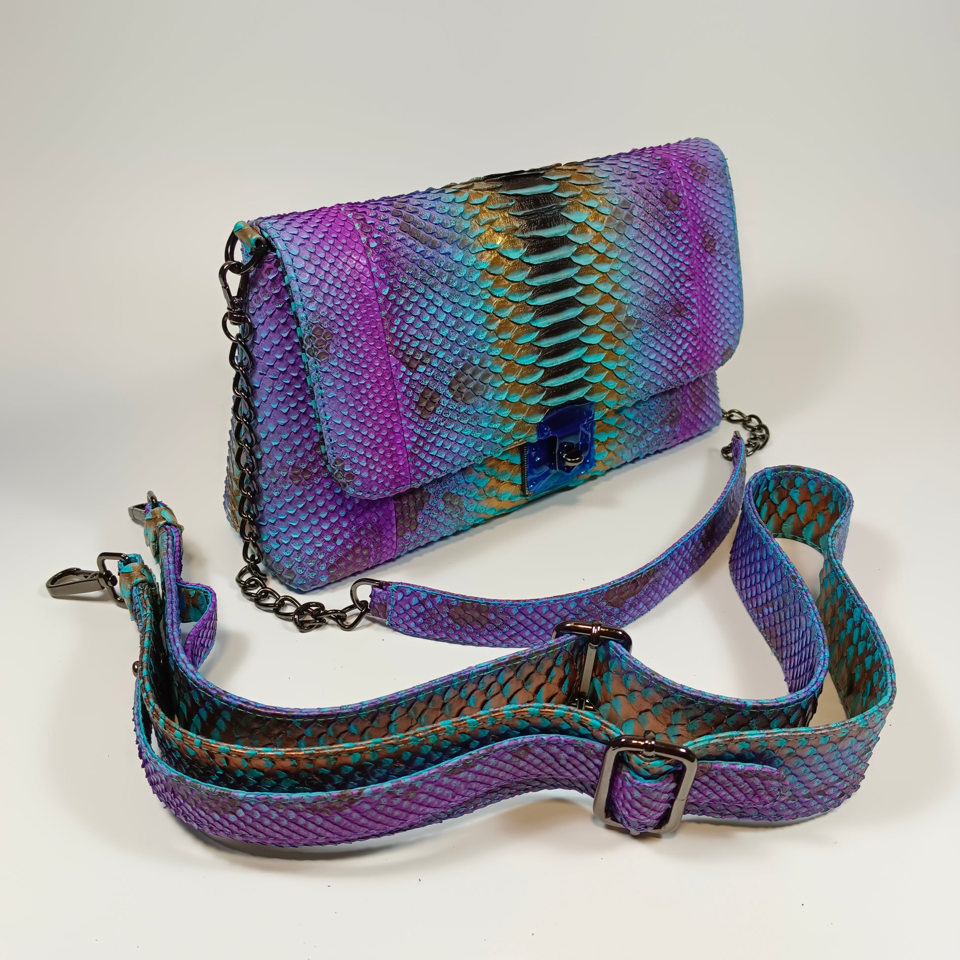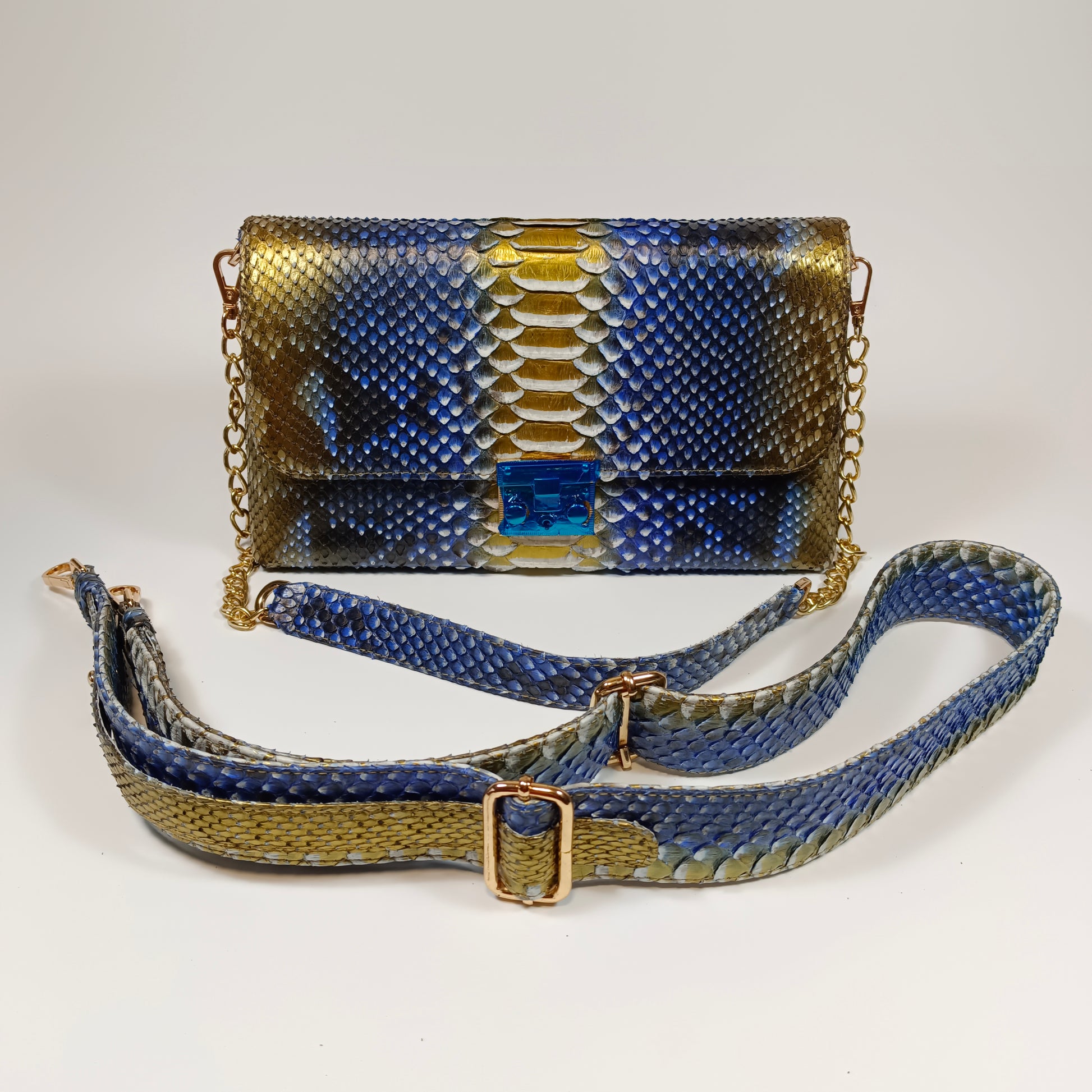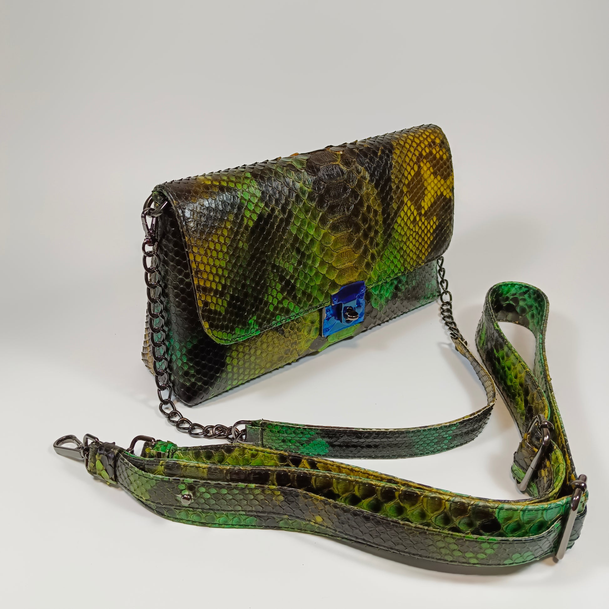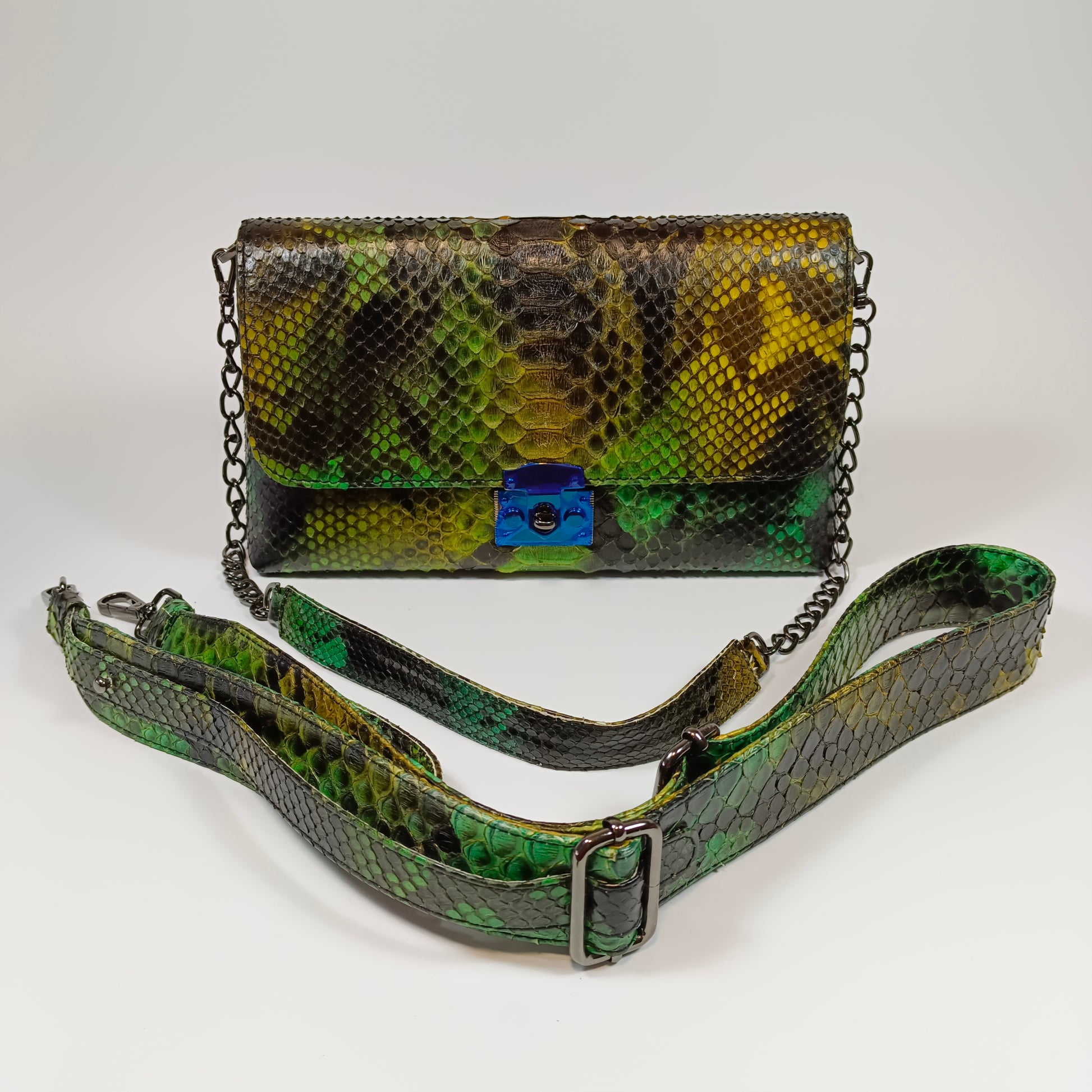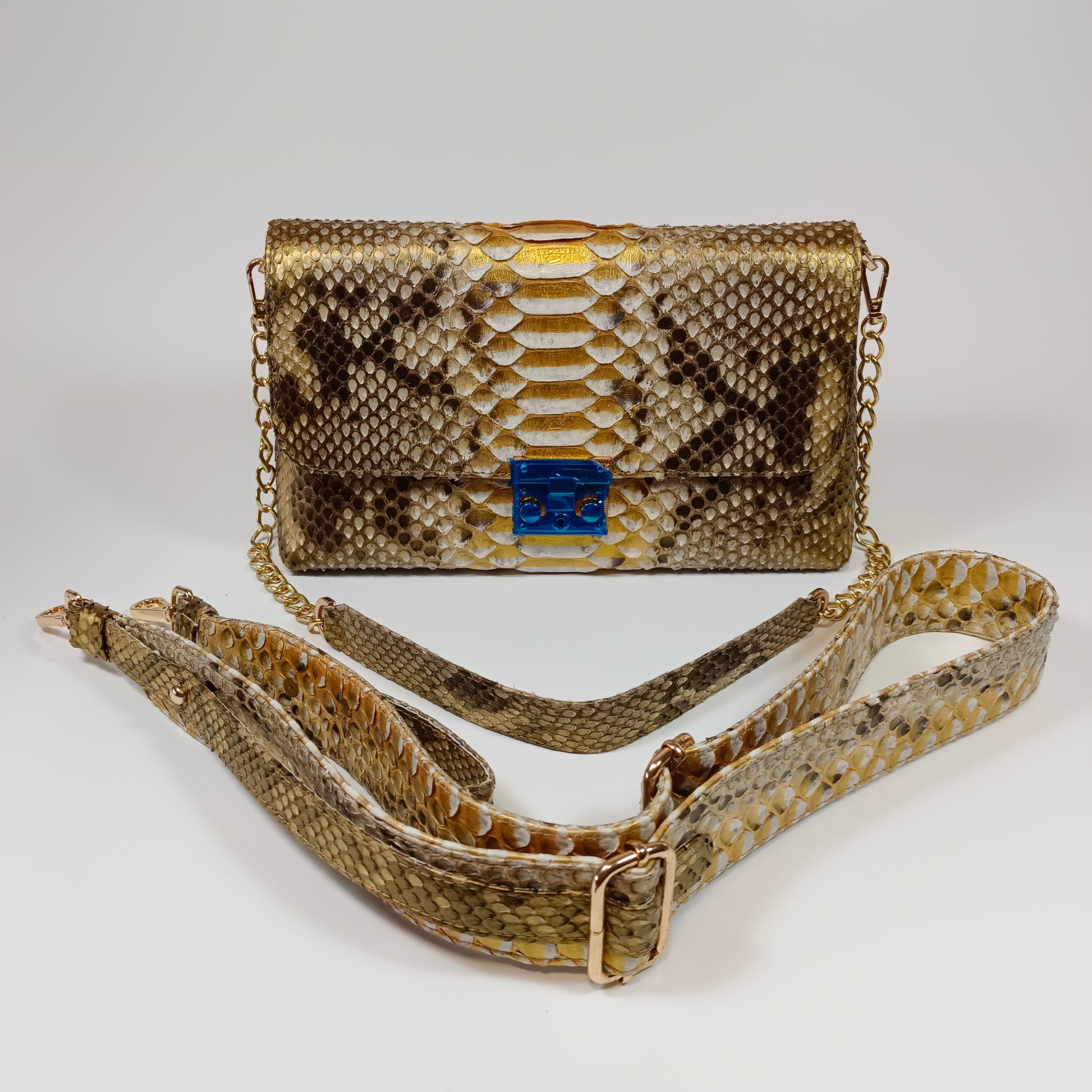 A Bolsa Gun, confeccionada em pele de cobra Python genuína, oferece luxo e exclusividade em cada detalhe. Seu design atemporal combina sofisticação com resistência, ideal para quem busca estilo e durabilidade. Feita à mão, cada peça é única, refletindo elegância e autenticidade. Uma escolha premium que destaca sua personalidade e bom gosto. Dimensões: 28 cm de comprimento, 8 cm de largura e 16 cm de altura | alça em couro e corrente de metal 70 cm e alça de couro 115cm.