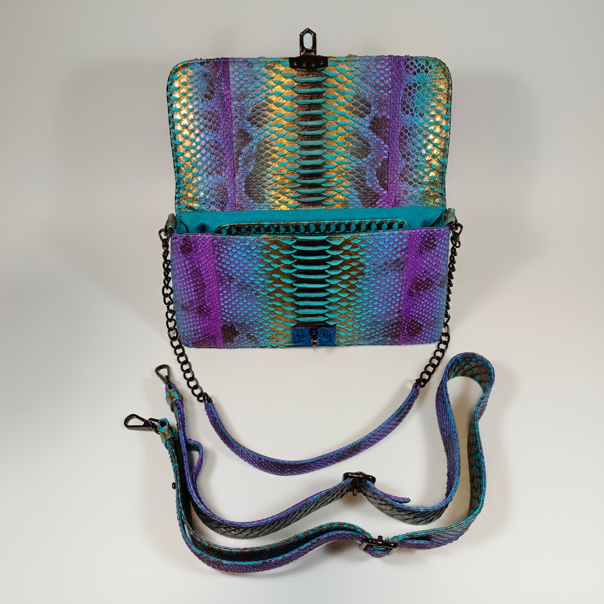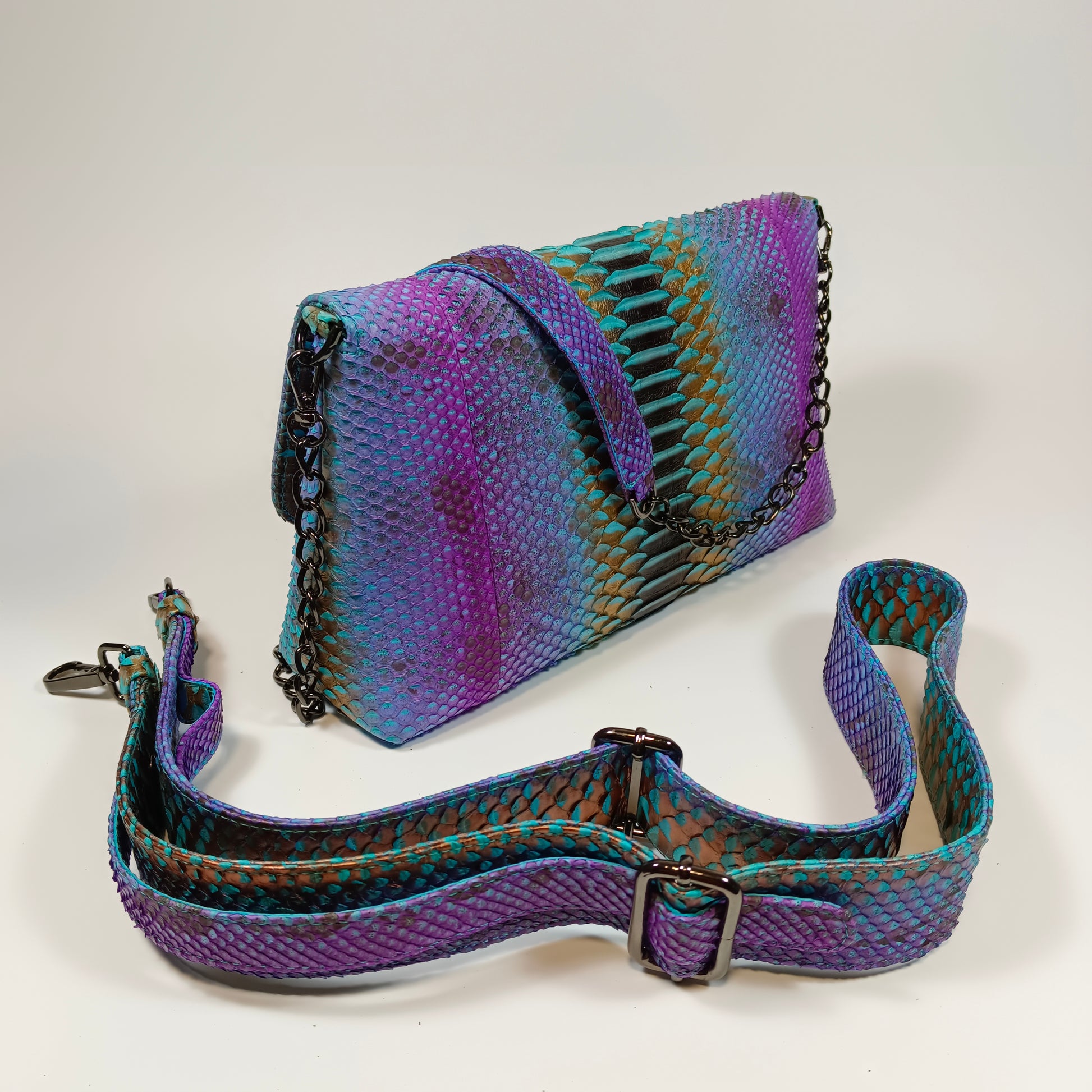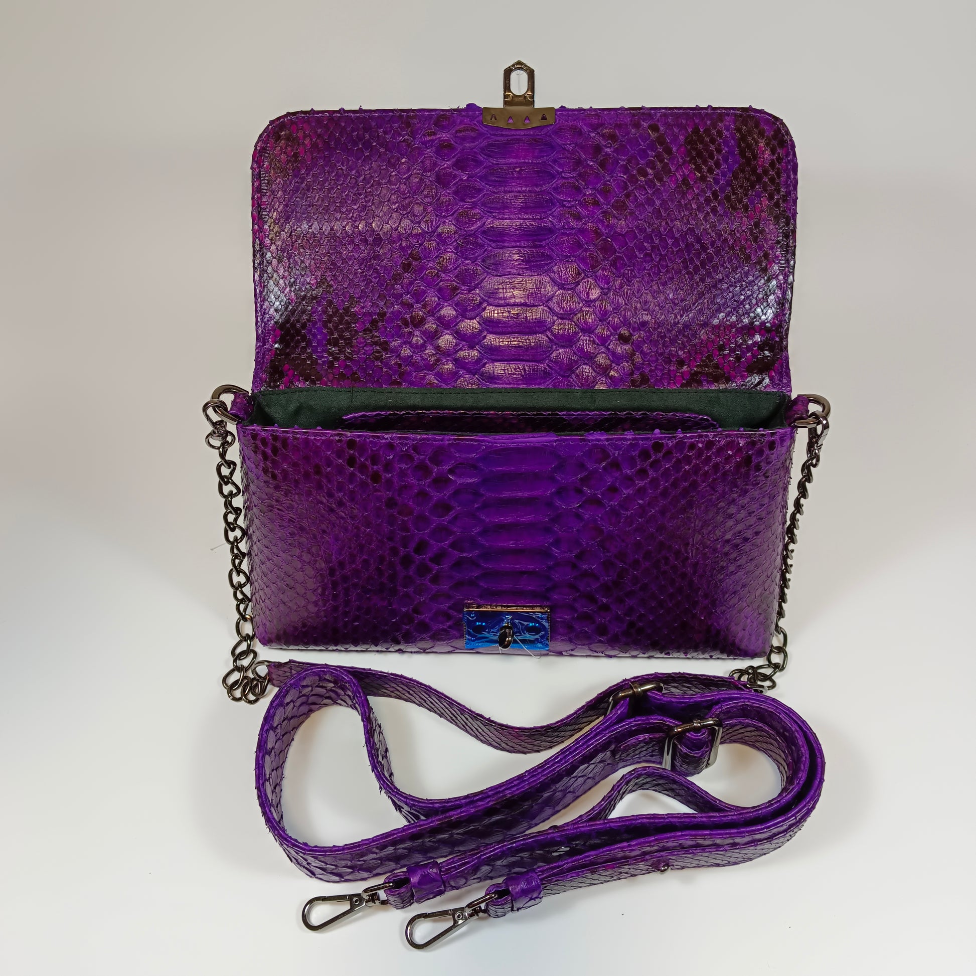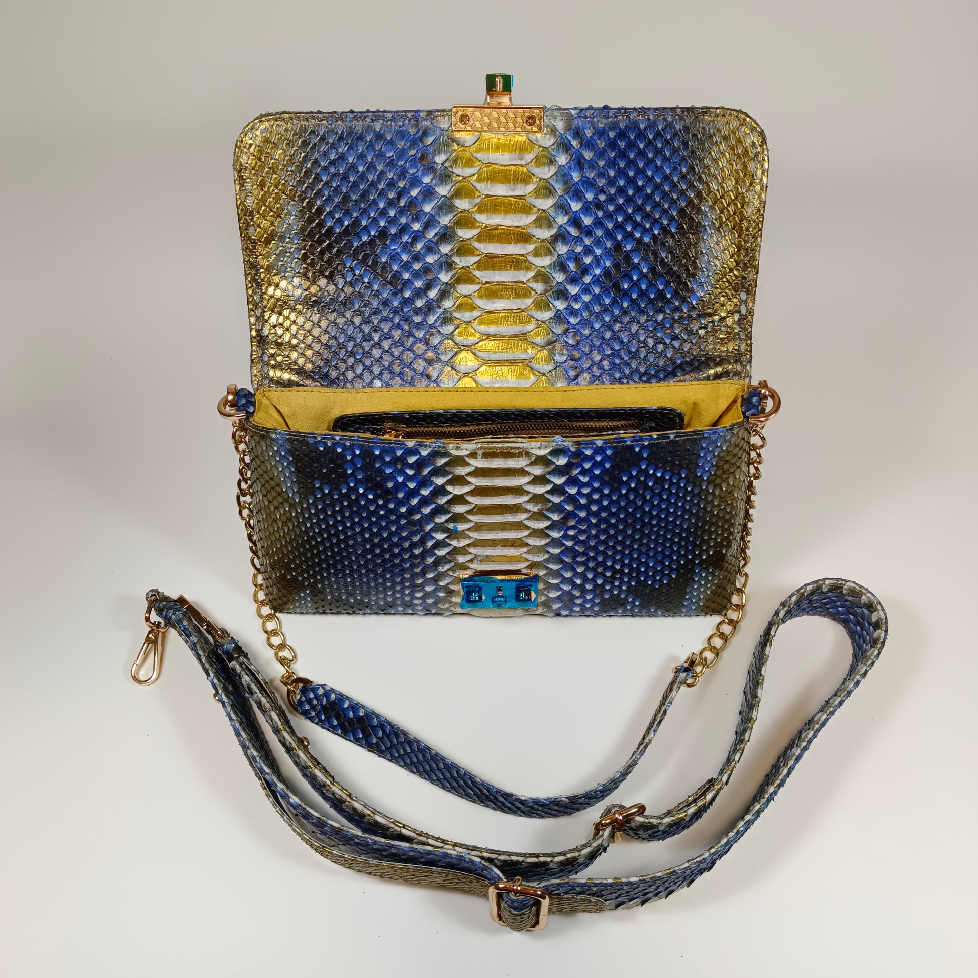 A Bolsa Gun, confeccionada em pele de cobra Python genuína, oferece luxo e exclusividade em cada detalhe. Seu design atemporal combina sofisticação com resistência, ideal para quem busca estilo e durabilidade. Feita à mão, cada peça é única, refletindo elegância e autenticidade. Uma escolha premium que destaca sua personalidade e bom gosto. Dimensões: 28 cm de comprimento, 8 cm de largura e 16 cm de altura | alça em couro e corrente de metal 70 cm e alça de couro 115cm.