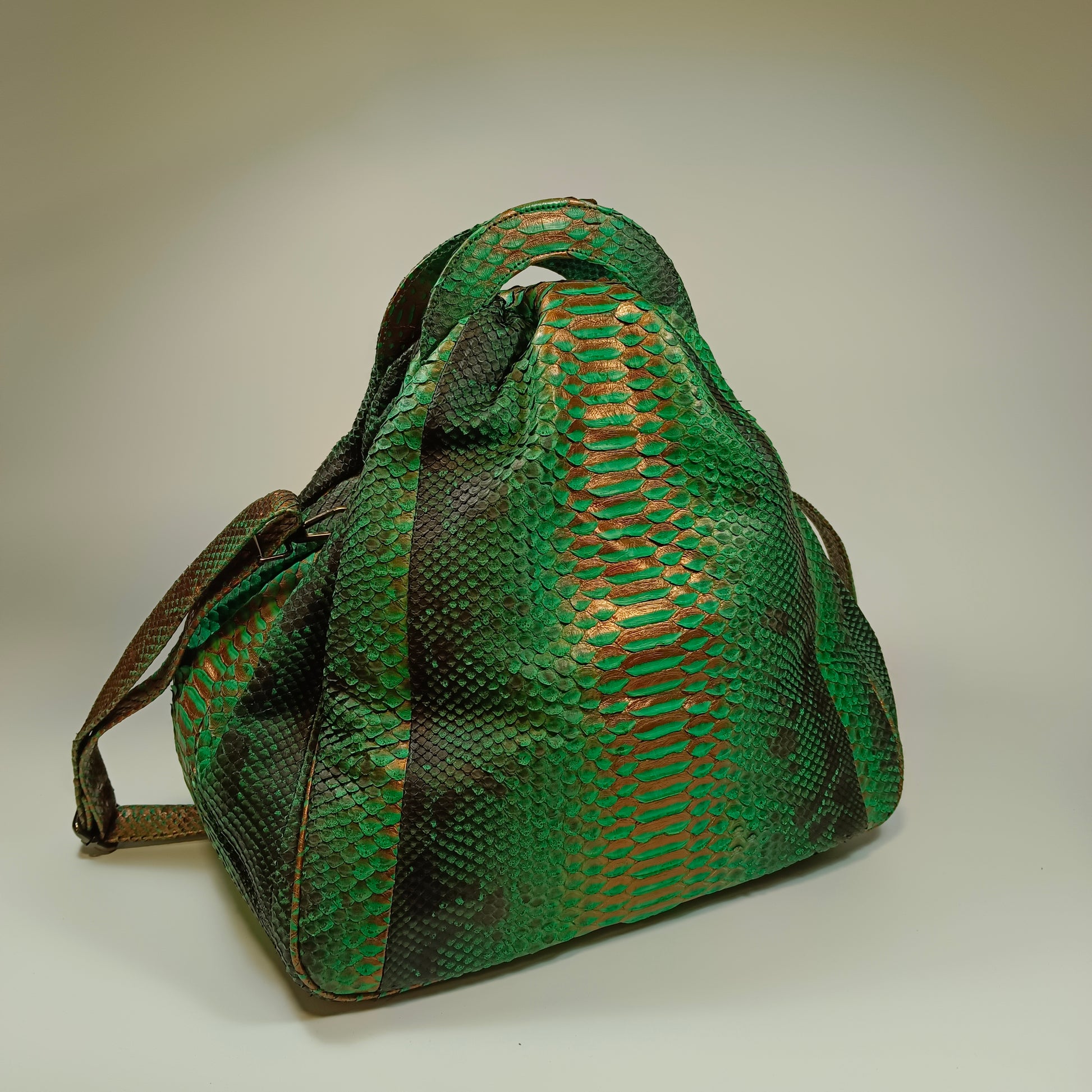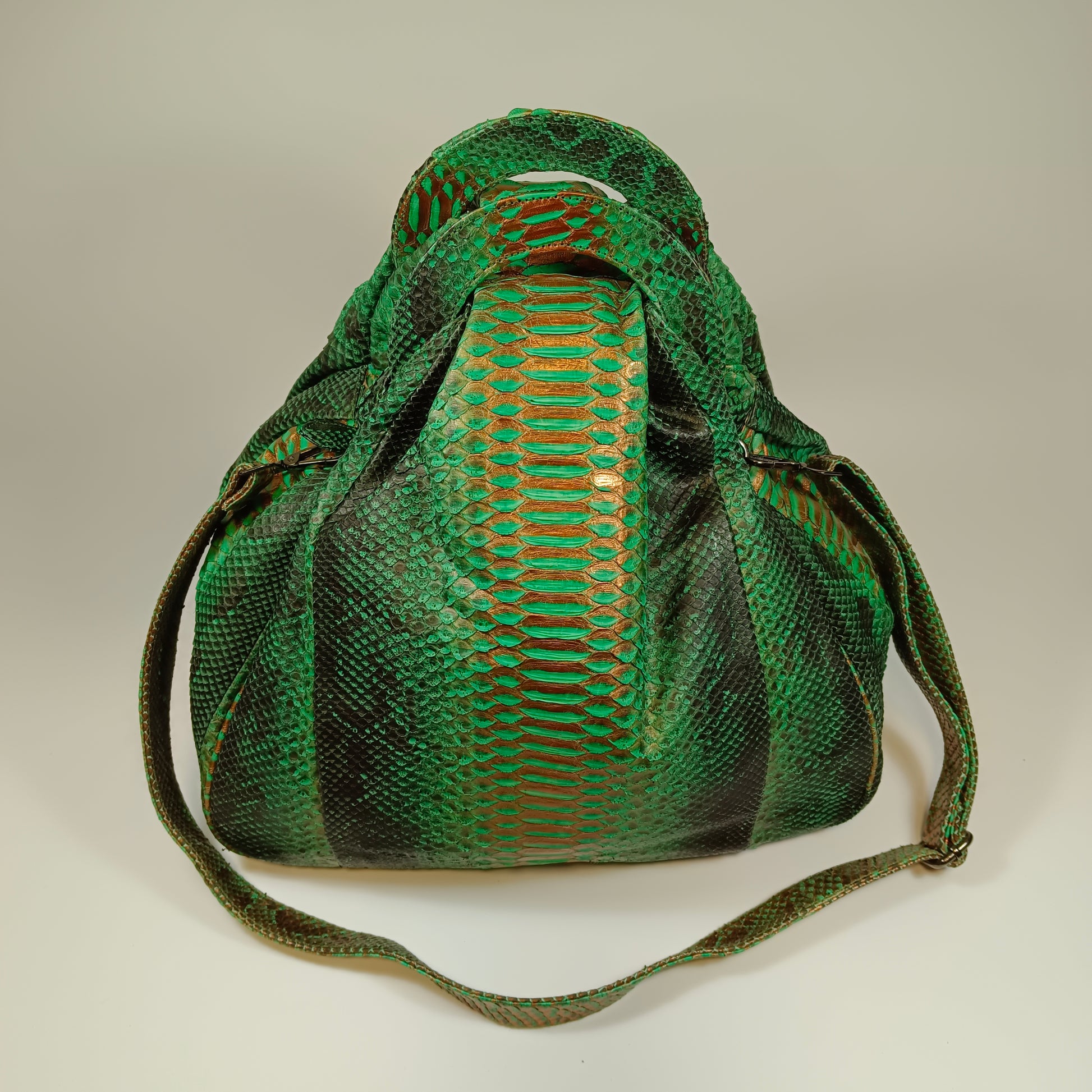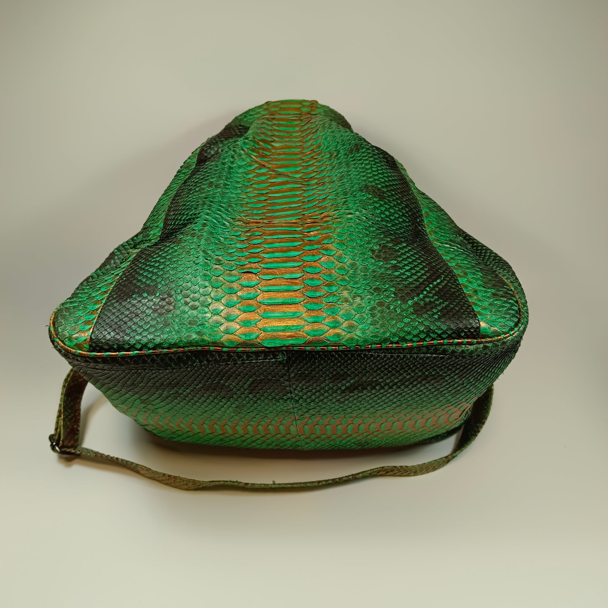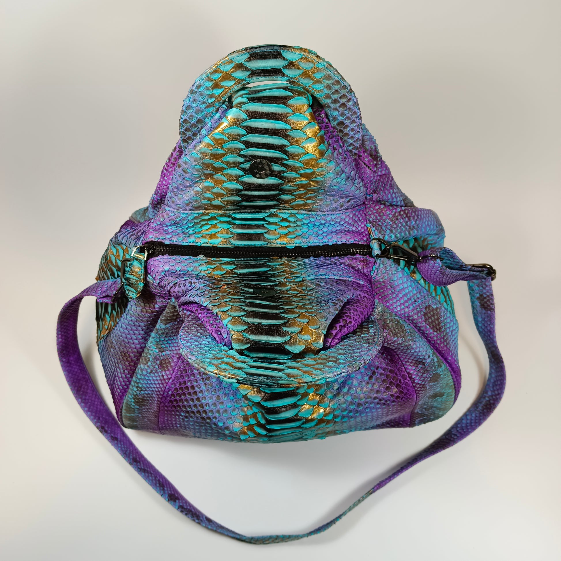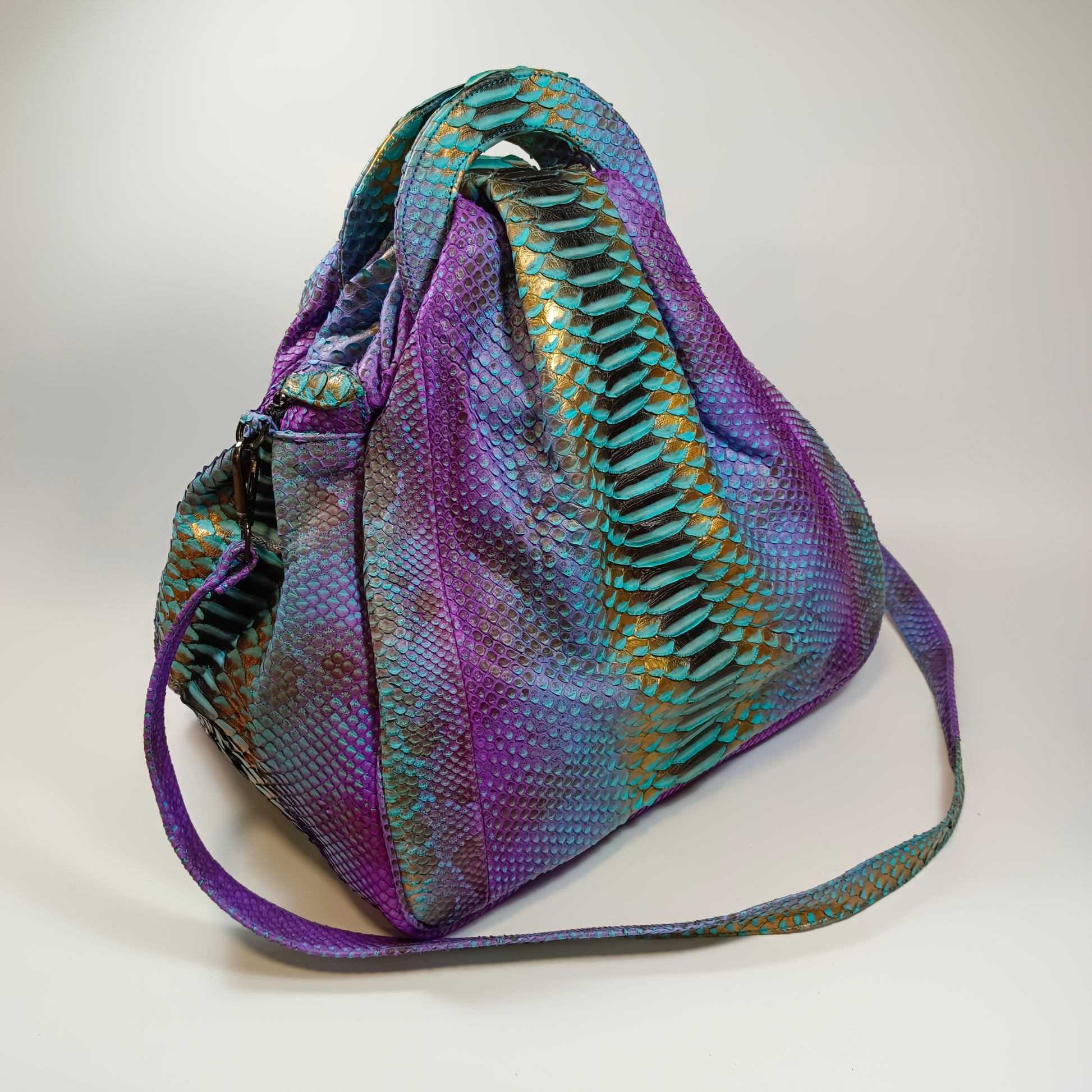 A bolsa Panda é confeccionada à mão com pele autêntica de Python do Sudeste Asiático, trazendo um toque de exclusividade e sofisticação incomparável. Com padrões únicos em cada peça, a Panda oferece um design elegante e atemporal, perfeito para mulheres que buscam destacar-se com estilo e requinte. Sua estrutura refinada e acabamento impecável refletem luxo discreto e funcionalidade, tornando-a uma escolha versátil para qualquer ocasião. Dimensões: 34 cm de comprimento, 26 cm de largura e 33 cm de altura | alça de couro 115 cm.