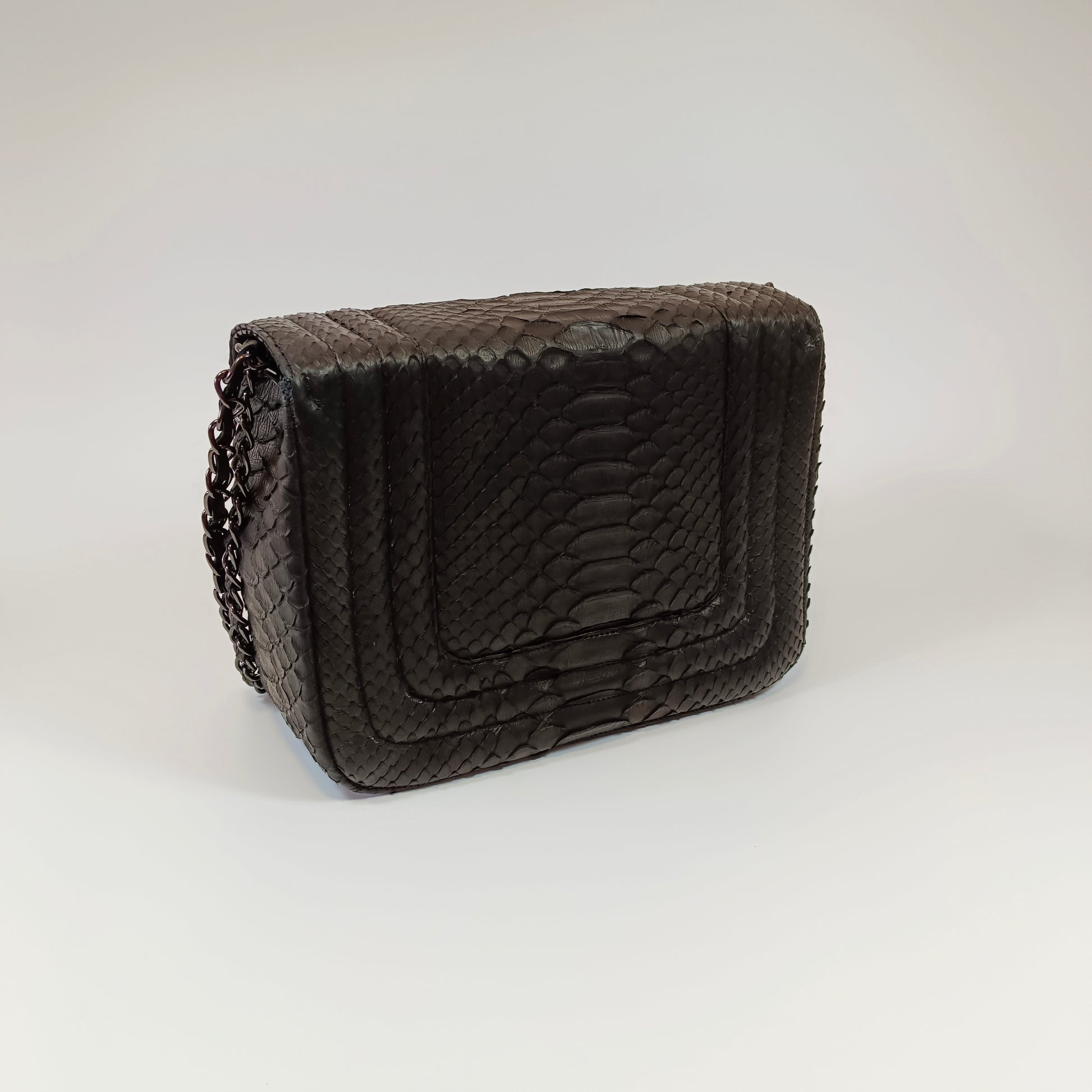 A bolsa Pietra é cuidadosamente feita à mão com pele autêntica de Python do Sudeste Asiático, garantindo exclusividade e elegância em cada detalhe. Com padrões únicos que realçam a beleza natural da pele, a Pietra oferece um design sofisticado e atemporal. Ideal para mulheres que buscam um acessório luxuoso e funcional, esta bolsa é perfeita para compor looks que exijam estilo e distinção. Dimensões: 25 cm de comprimento, 9 cm de largura e 18 cm de altura | alça em couro e corrente de metal 120/55 cm.