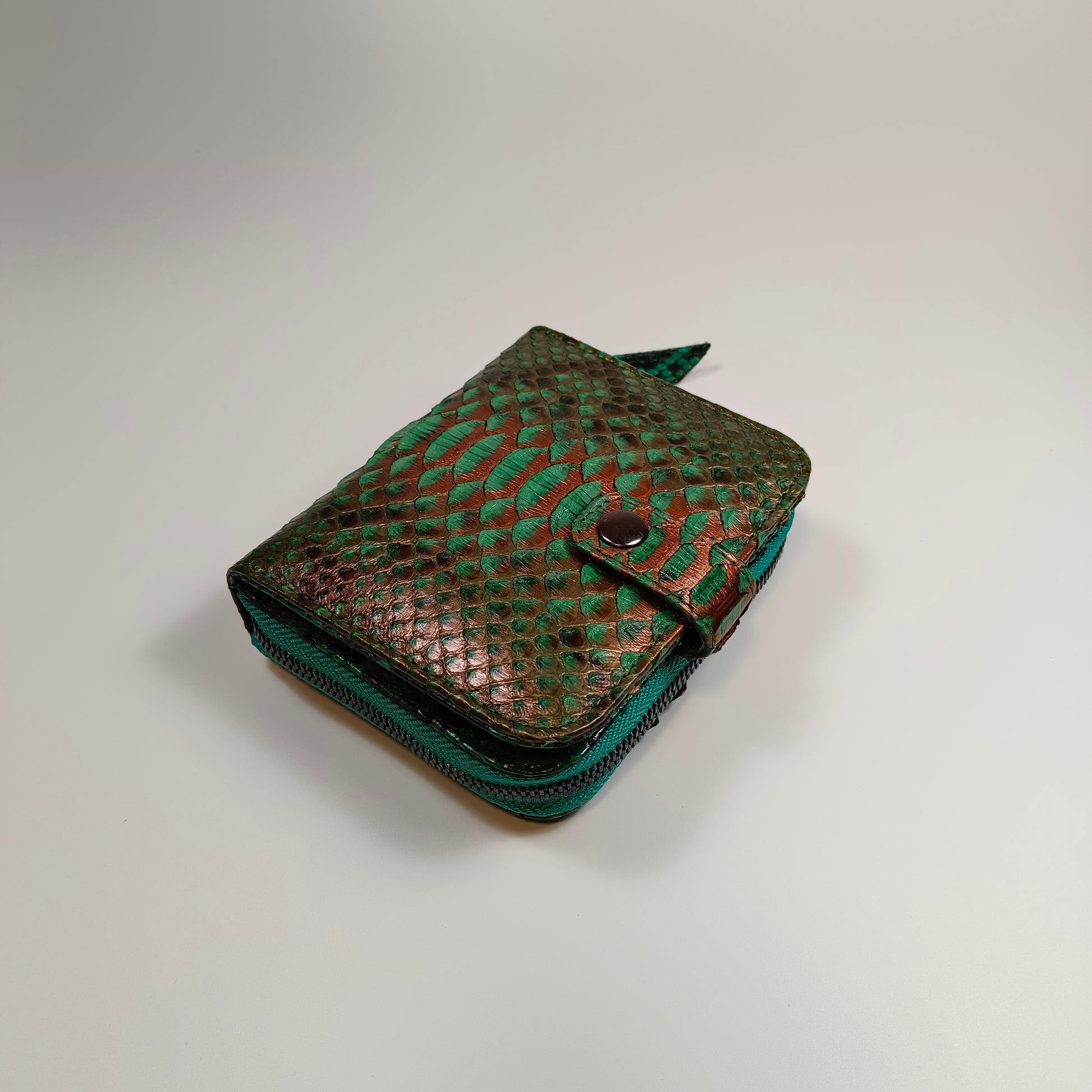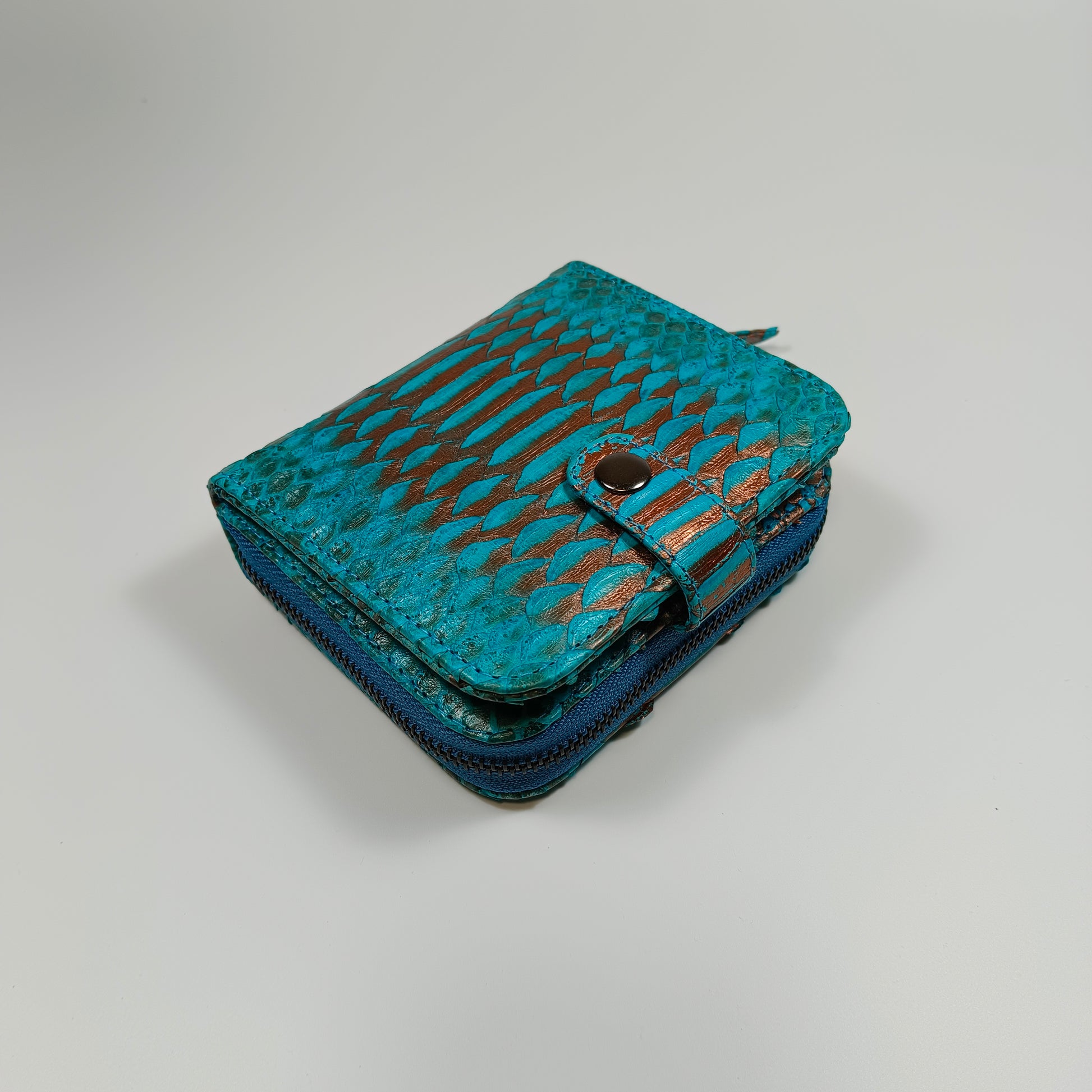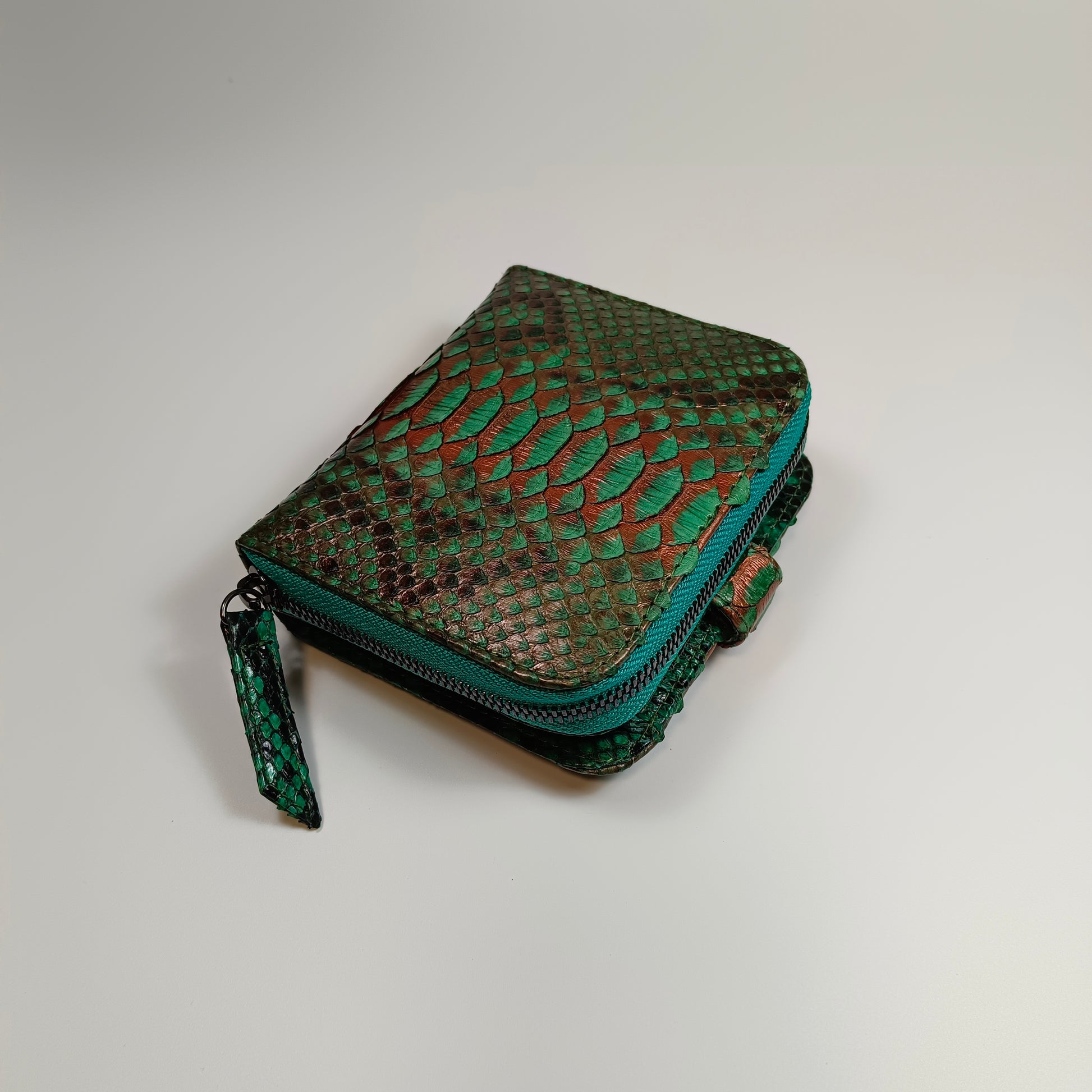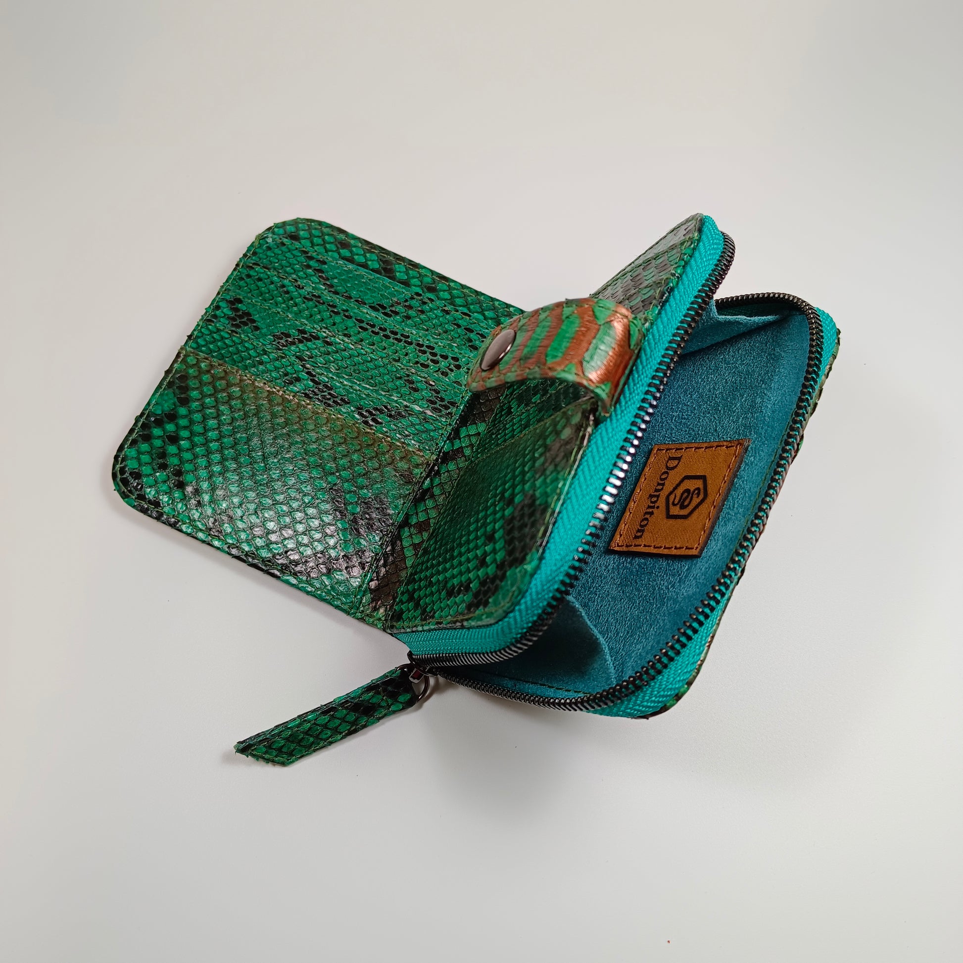 A carteira Jacey, confeccionada à mão com pele de cobra Python genuína do Sudeste Asiático, oferece exclusividade e elegância com seus padrões e tonalidades únicos. Compacta e sofisticada, seu design artesanal combina luxo e praticidade, perfeita para quem busca um acessório refinado e autêntico. Dimensões: 12 cm de comprimento, 10 cm de altura.
