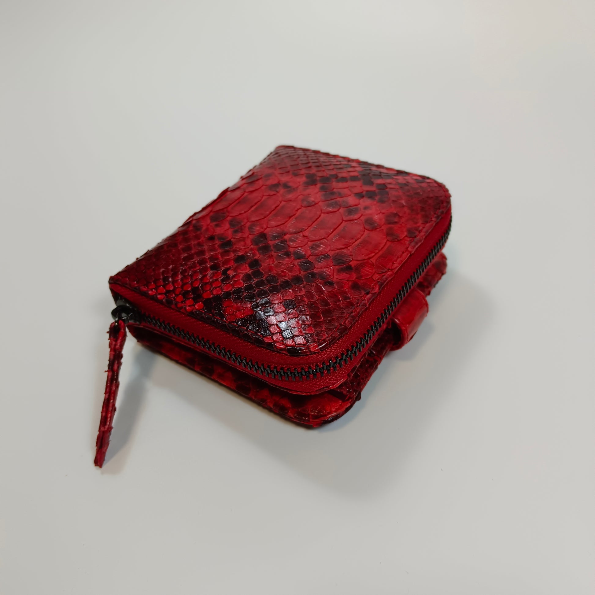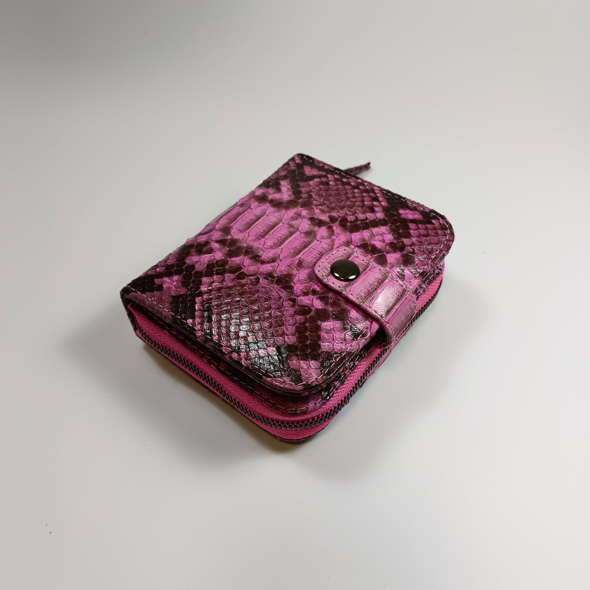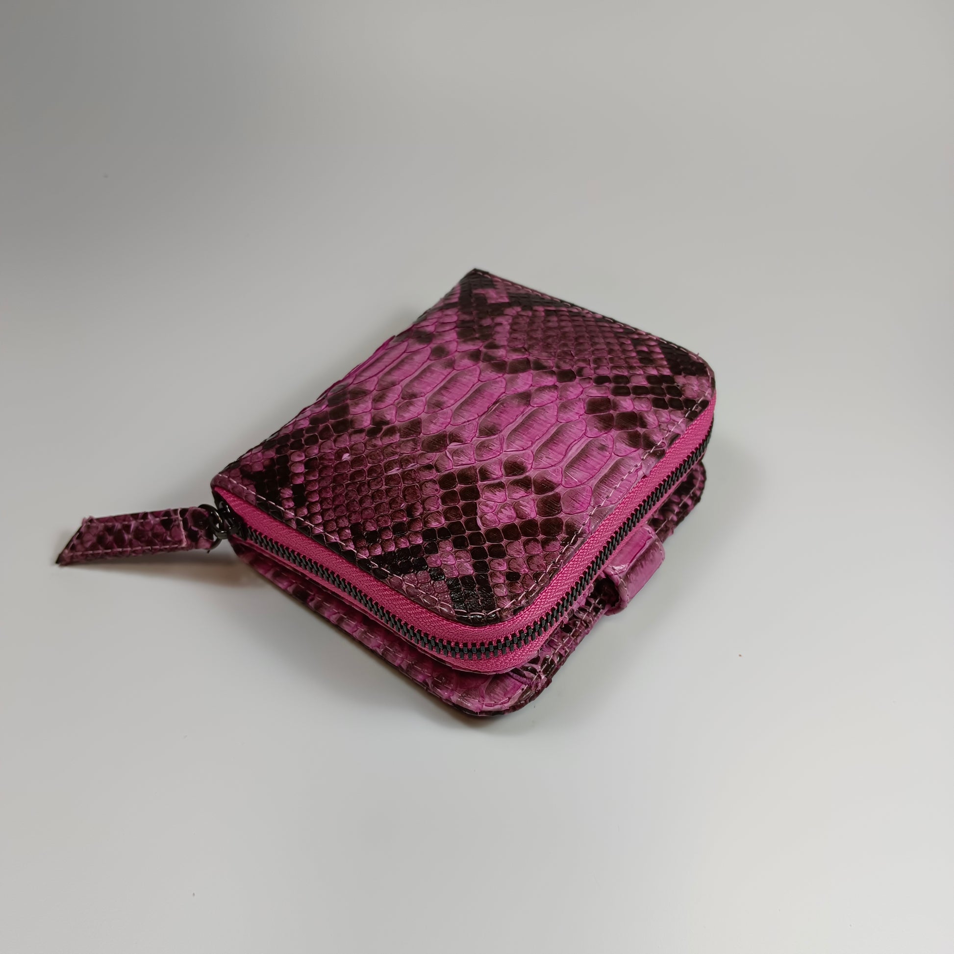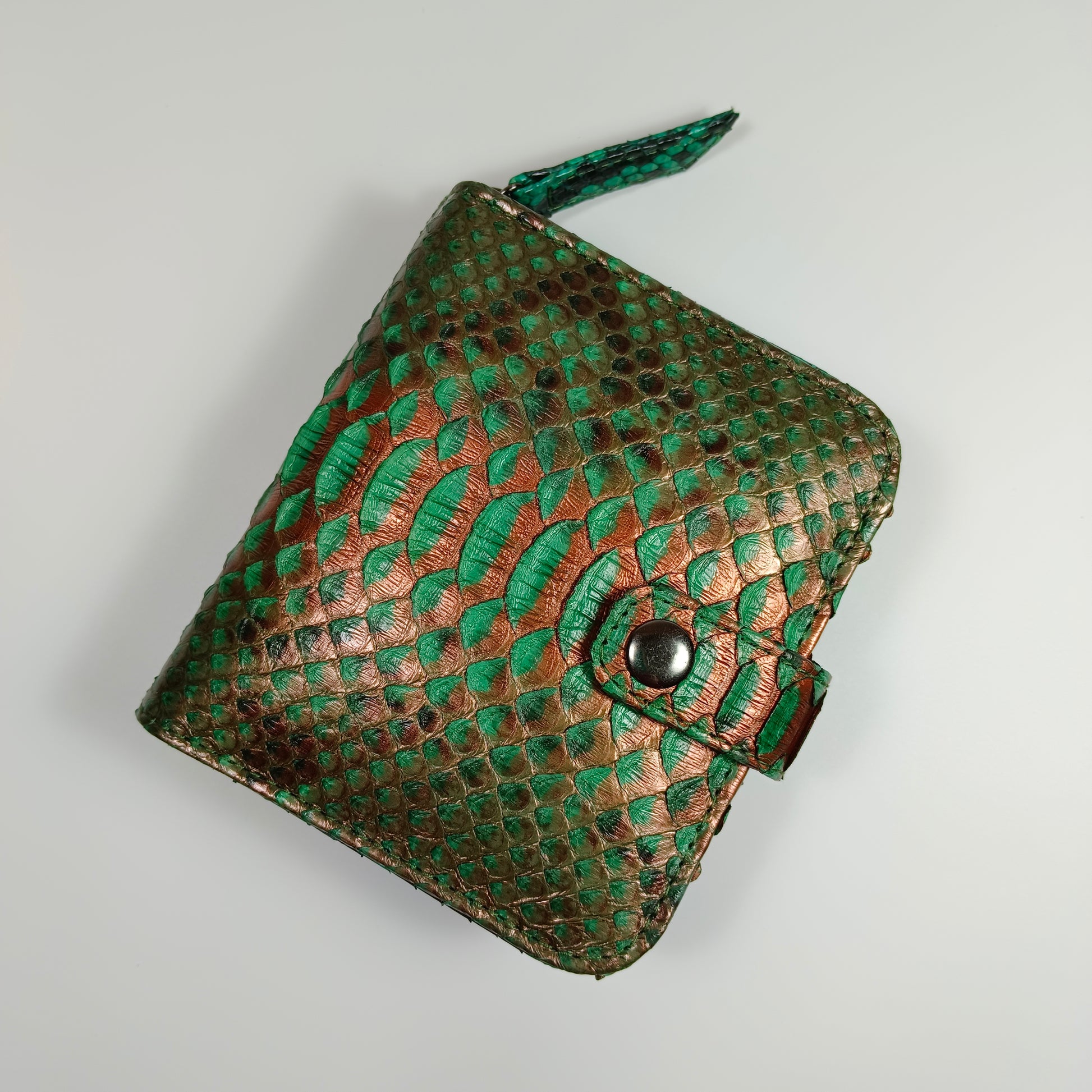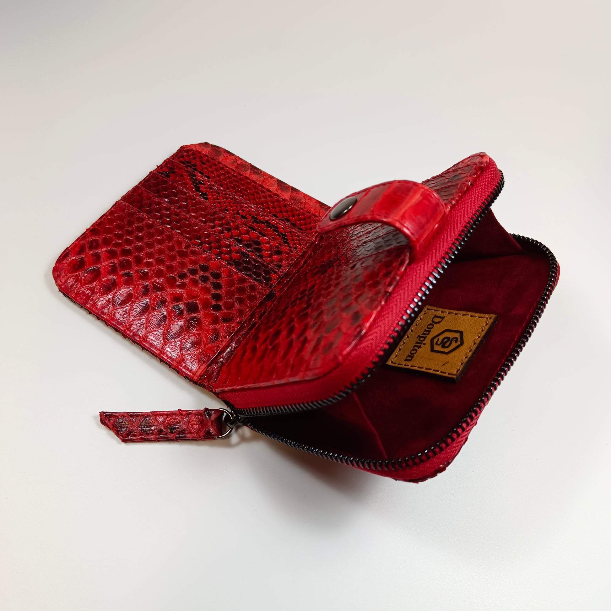A carteira Jacey, confeccionada à mão com pele de cobra Python genuína do Sudeste Asiático, oferece exclusividade e elegância com seus padrões e tonalidades únicos. Compacta e sofisticada, seu design artesanal combina luxo e praticidade, perfeita para quem busca um acessório refinado e autêntico. Dimensões: 12 cm de comprimento, 10 cm de altura.