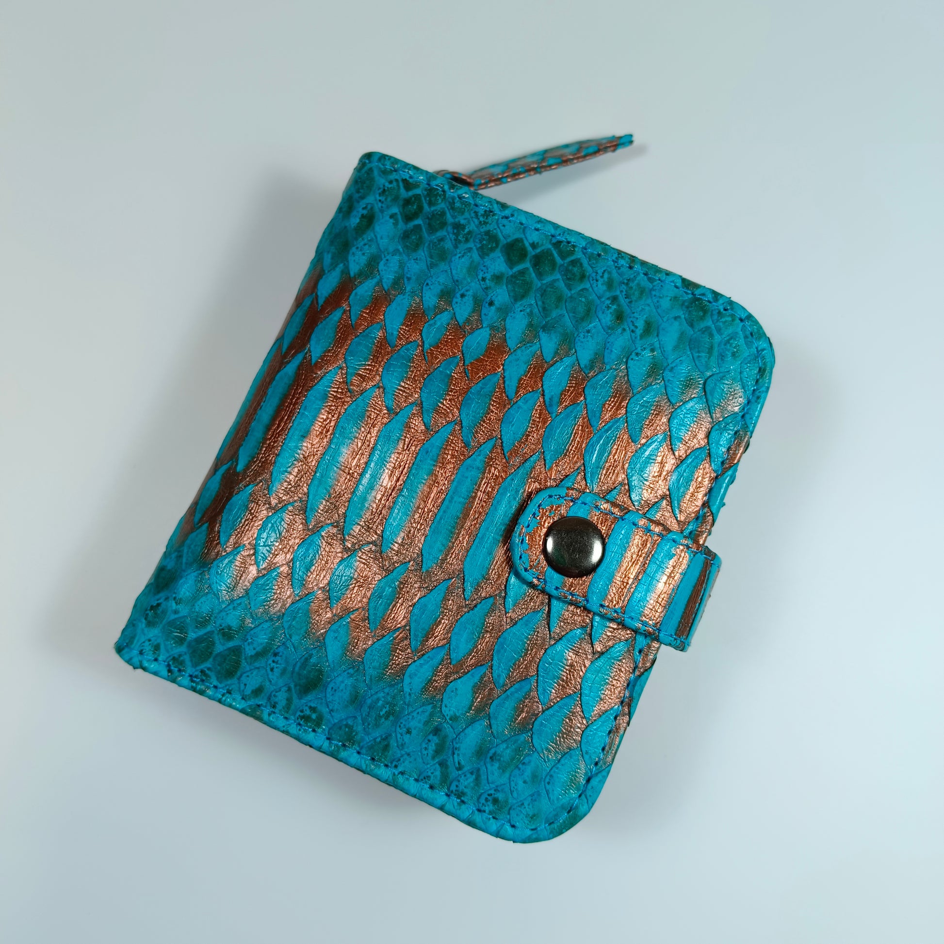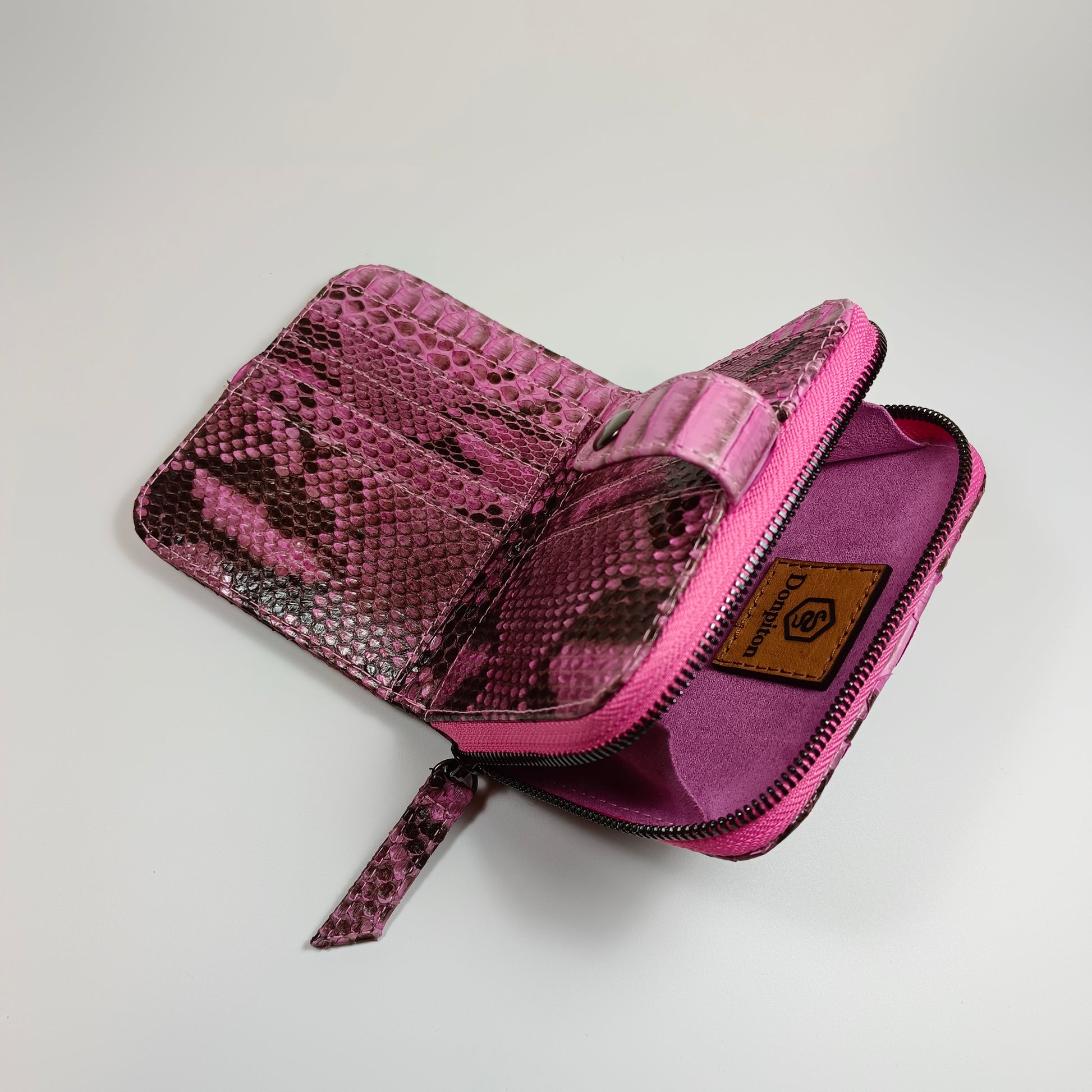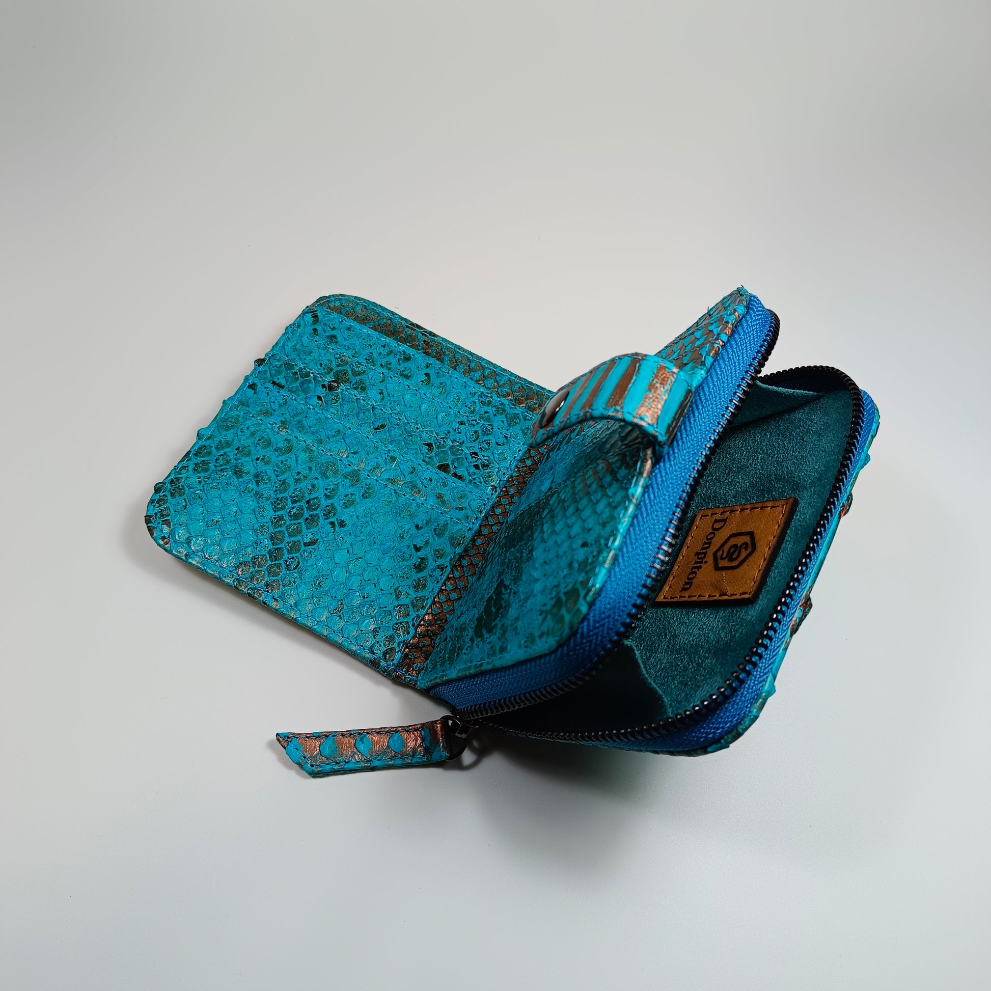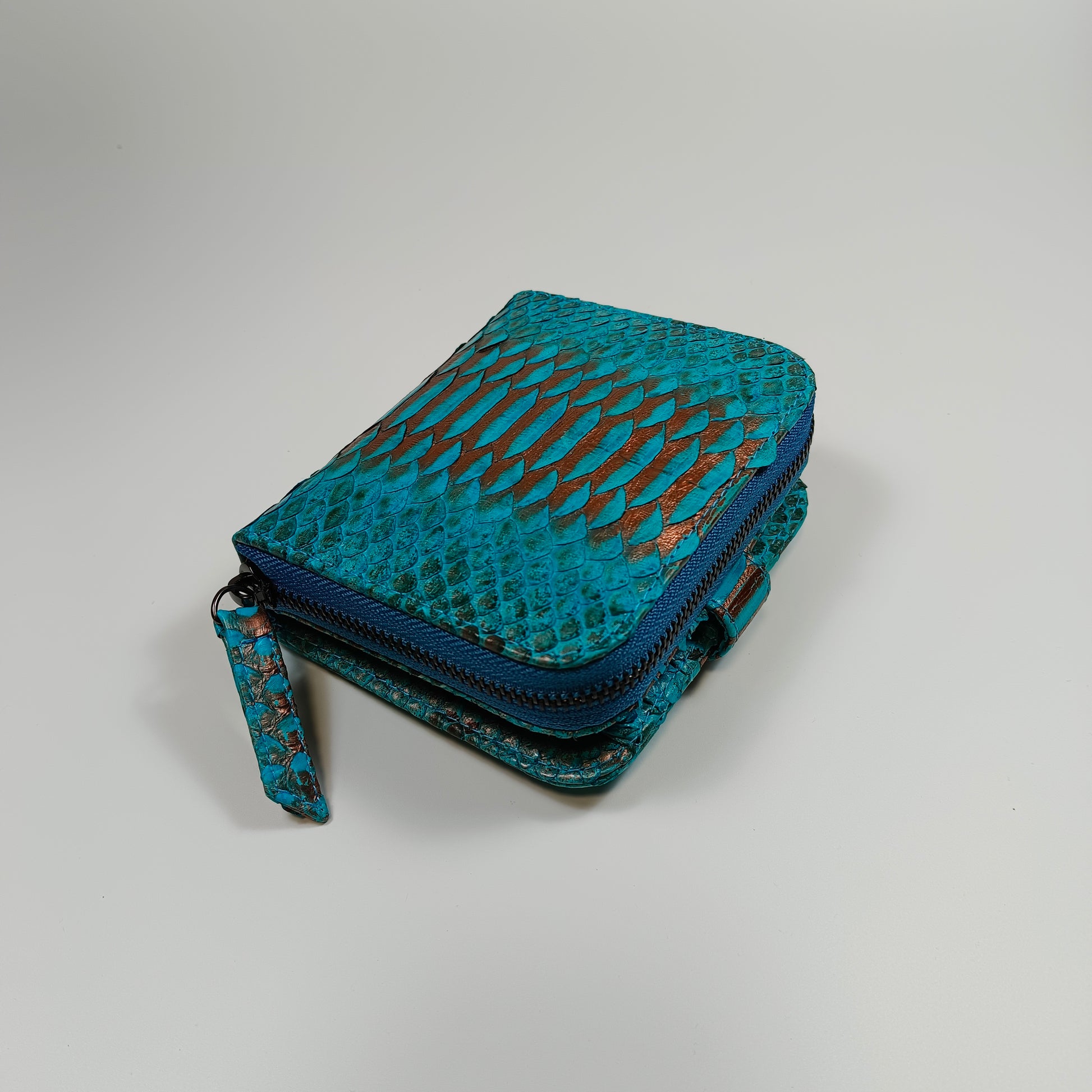 A carteira Jacey, confeccionada à mão com pele de cobra Python genuína do Sudeste Asiático, oferece exclusividade e elegância com seus padrões e tonalidades únicos. Compacta e sofisticada, seu design artesanal combina luxo e praticidade, perfeita para quem busca um acessório refinado e autêntico. Dimensões: 12 cm de comprimento, 10 cm de altura.
