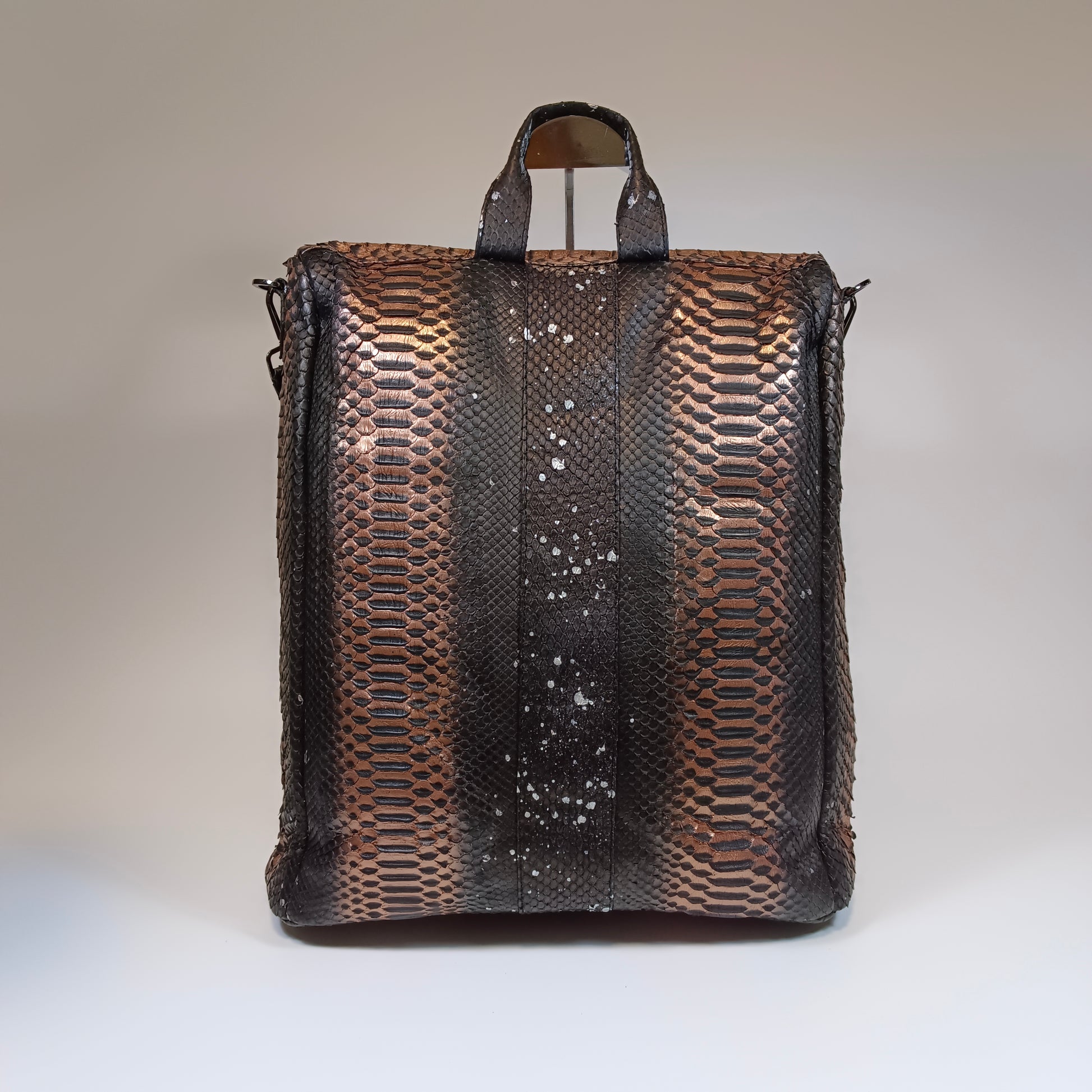 A mochila Alarm, confeccionada em pele de cobra Python genuína, oferece luxo e exclusividade em cada detalhe. Seu design atemporal combina sofisticação com resistência, ideal para quem busca estilo e durabilidade. Feita à mão, cada peça é única, refletindo elegância e autenticidade. Uma escolha premium que destaca sua personalidade e bom gosto. Dimensões: 34 cm de comprimento, 12 cm de largura e 38 cm de altura | alça de couro 60 cm.