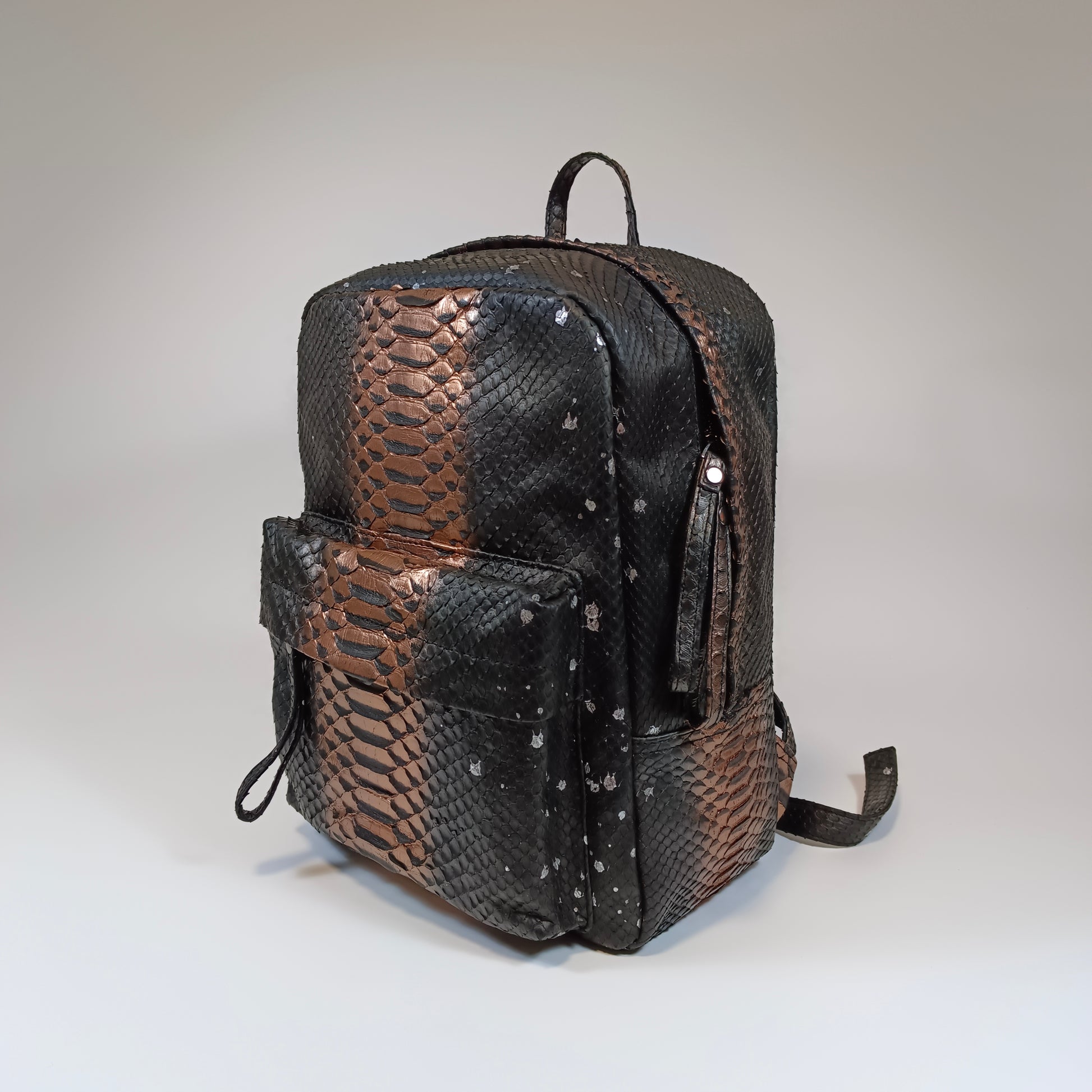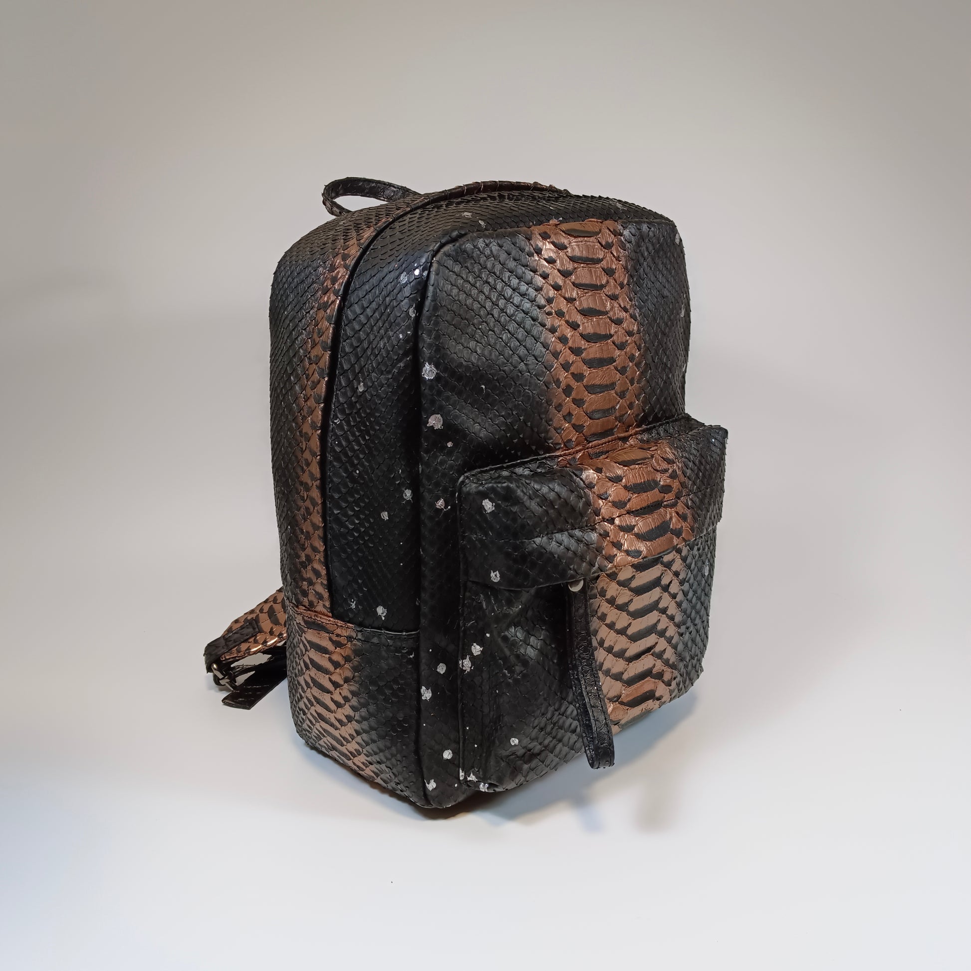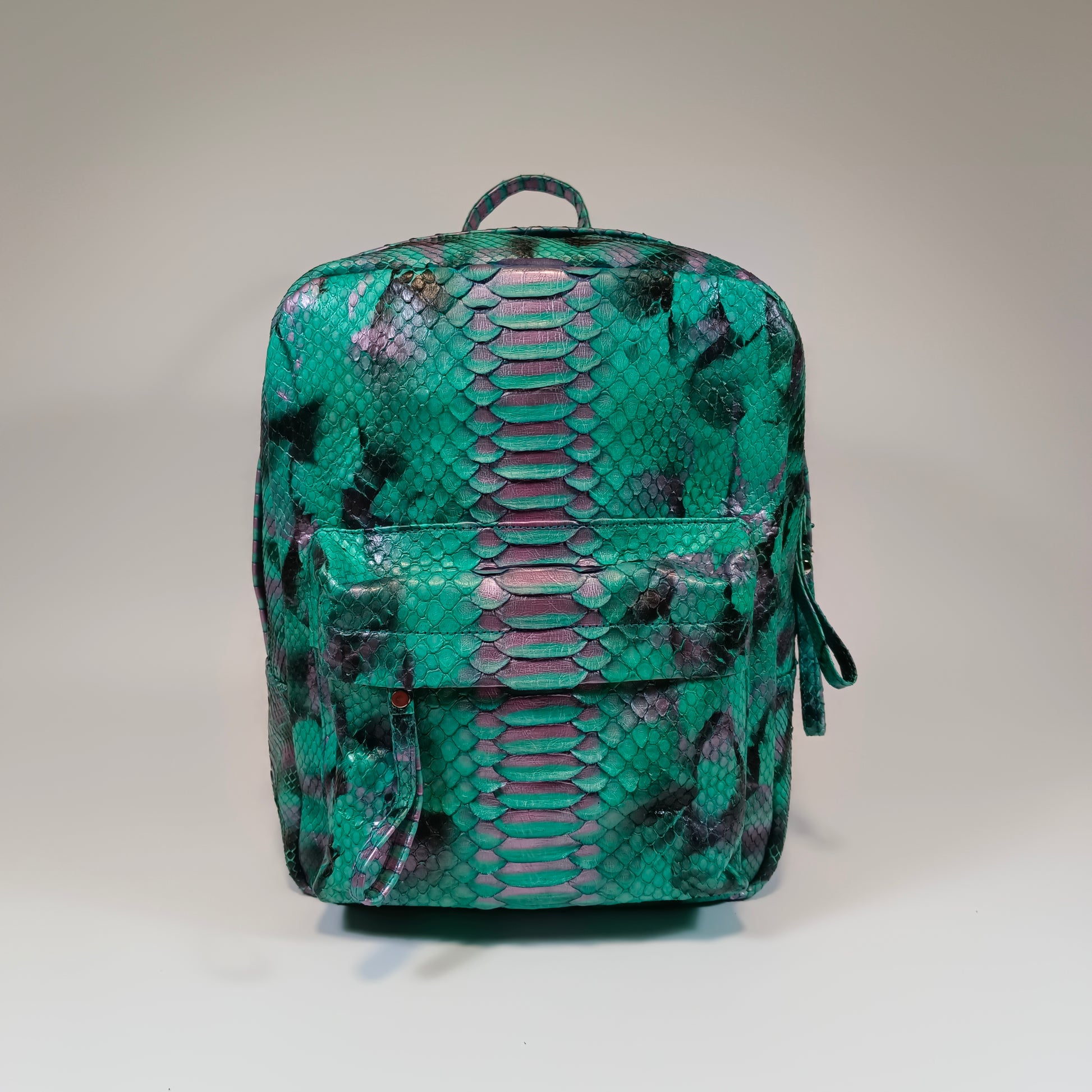 A mochila Mika Medium, confeccionada à mão com pele de cobra Python genuína do Sudeste Asiático, oferece exclusividade com padrões e tonalidades únicos. Combinando praticidade e sofisticação, seu design artesanal traz um toque de luxo e autenticidade, sendo ideal para quem busca estilo e elegância em um acessório versátil e exclusivo. Dimensões: 25 cm de comprimento, 12 cm de largura e 32 cm de altura.